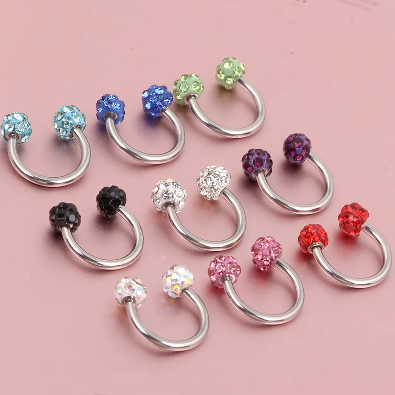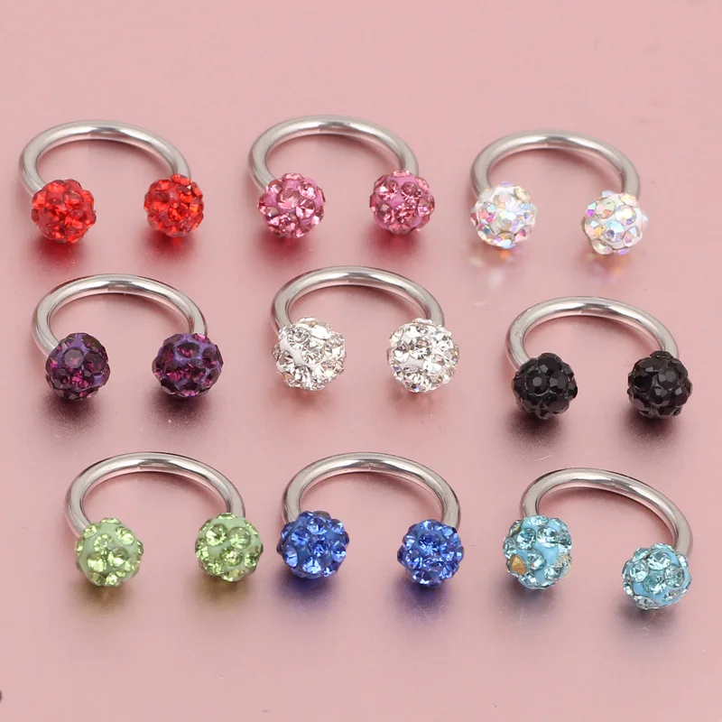 Кольцо-обруч Для Пирсинга Ушей подковы кольцо для носа из нержавеющей стали зажим для носа CBR кольцо двойной хрустальный шар для пирсинга Septums ювелирные изделия