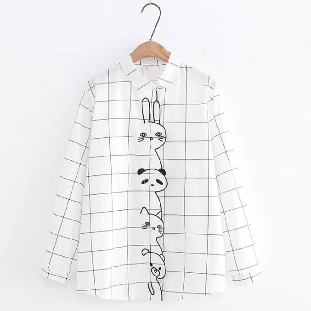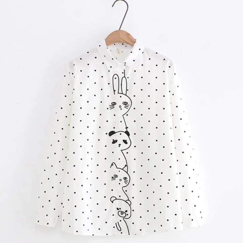 Название: рубашки для женщин с рисунком кролика; Простые милые блузки для отдыха для девочек; Сезон весна-лето; Kawaii; Праздничная Женская одежда в консервативном стиле Сезон: весна-лето Пол: женские рубашки Повод: повседневный, элегантный дизайн Тип узора: мультфильм Содержимое упаковки: только 1 рубашка