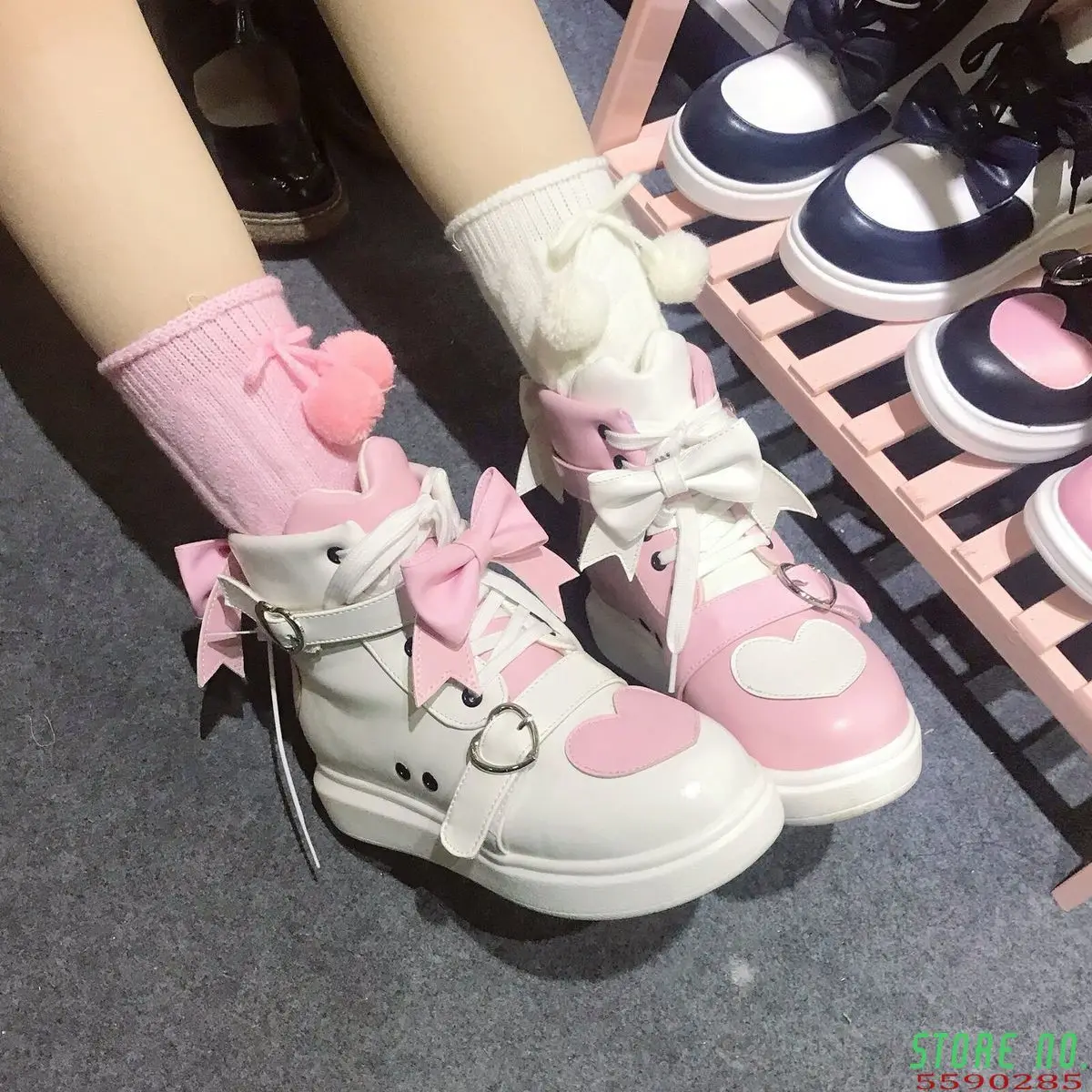 Женские кроссовки в стиле Лолиты, милые, розовые, спортивные, с высоким берцем, на белой платформе, для бега, для колледжа, 2021