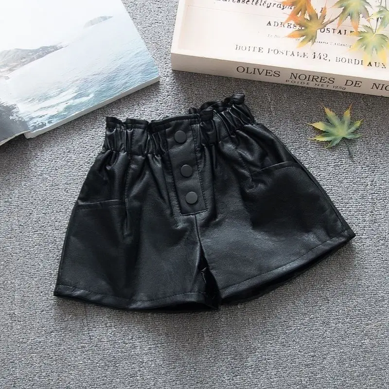 Весенние шорты, сезон 2021, новые кожаные брюки для девочек, детски...