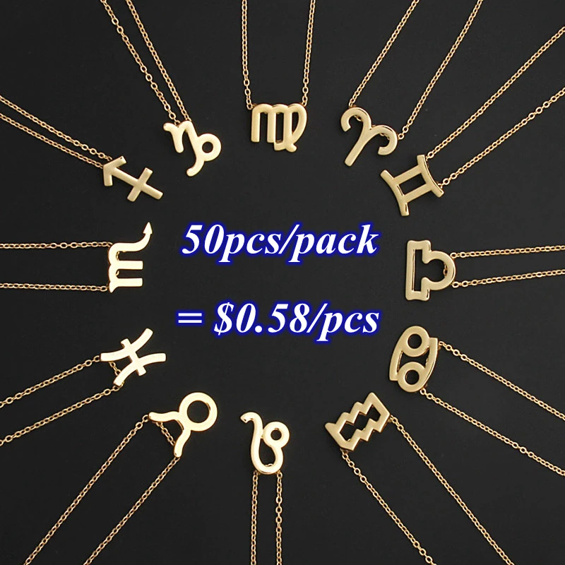 Оптовая продажа 50 шт.упак. 12 созвездий звездных Знак зодиака гороскоп золотое покрытие сплав Шарм цепи Подвеска колье для оптом