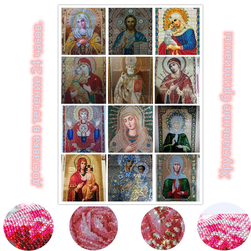 Алмазная 5D Вышивка религиозные иконы, полностью круглая картина с ...