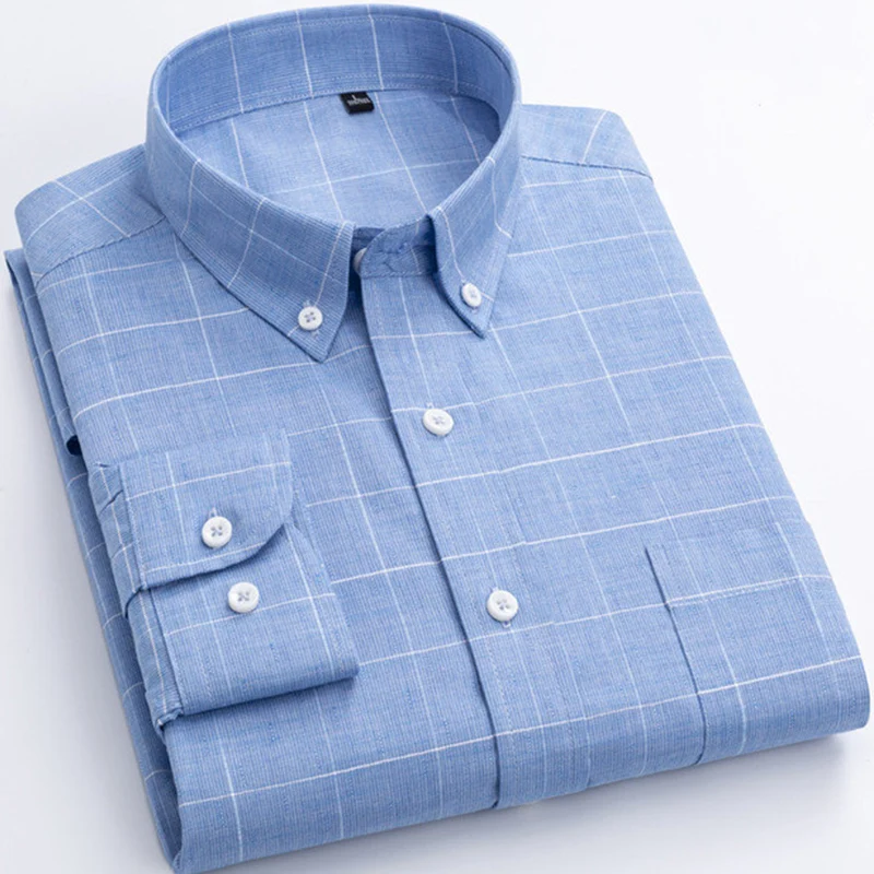 Рубашка мужская из 100% хлопка Оксфорд, с длинным рукавом, на пуговицах, в клетку, с карманами, большие размеры 8XL, 7XL