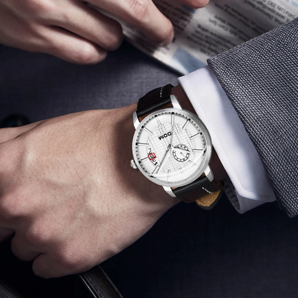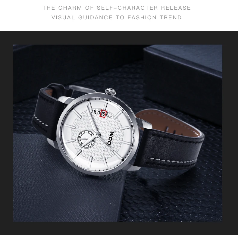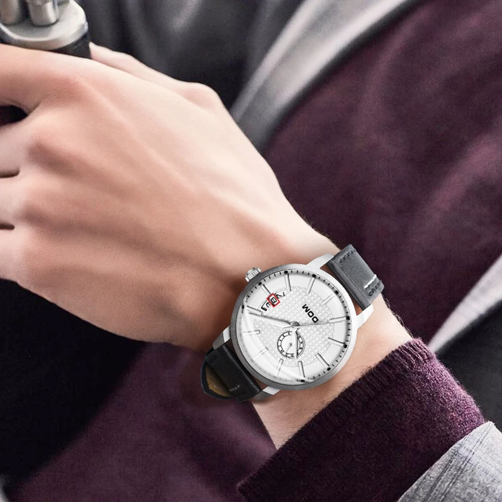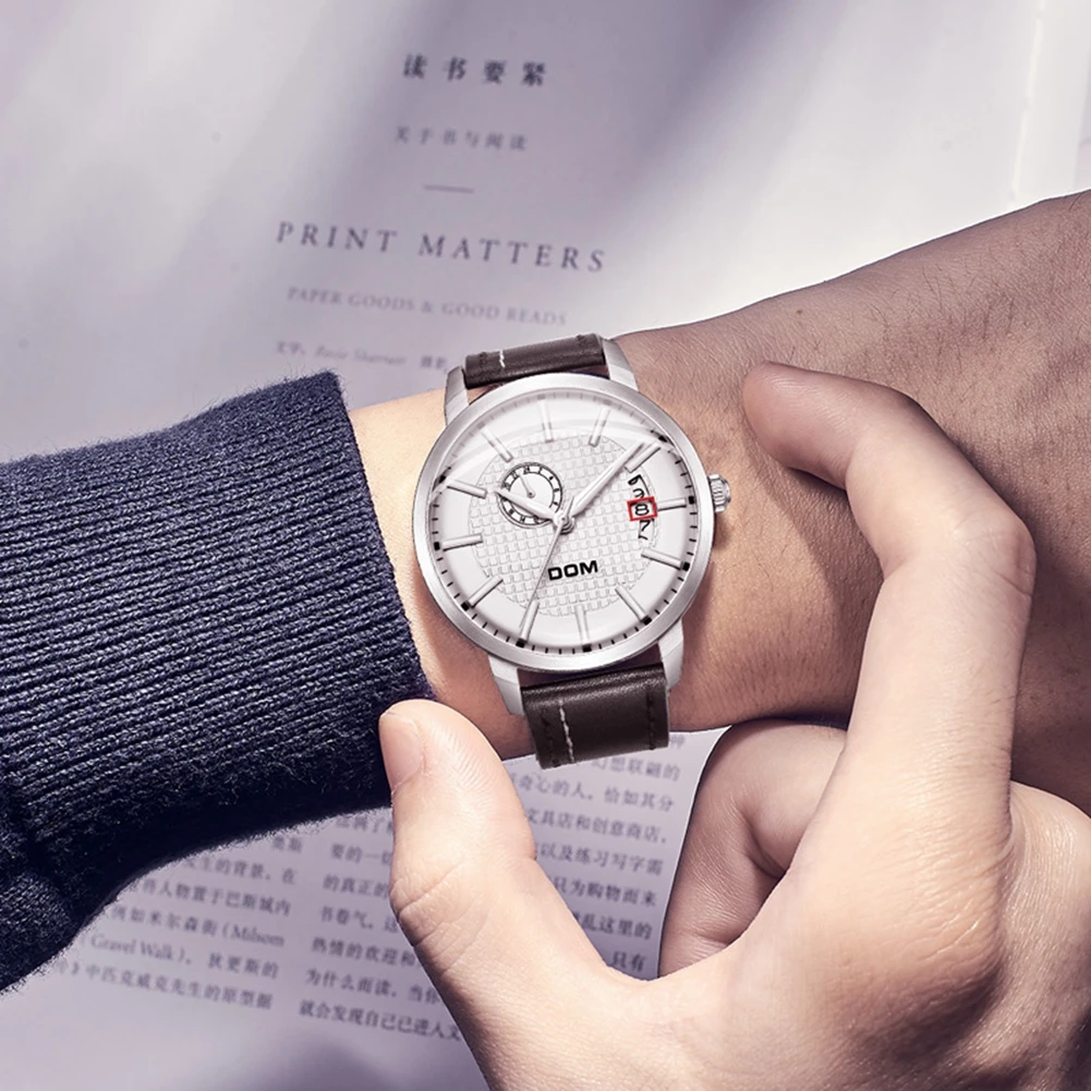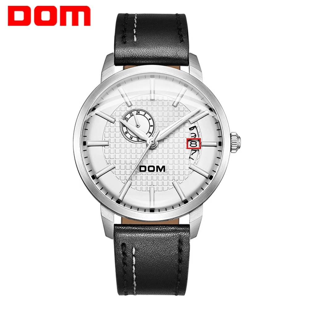 DOM мужские водонепроницаемые часы с кожаным ремешком тонкие кварце...