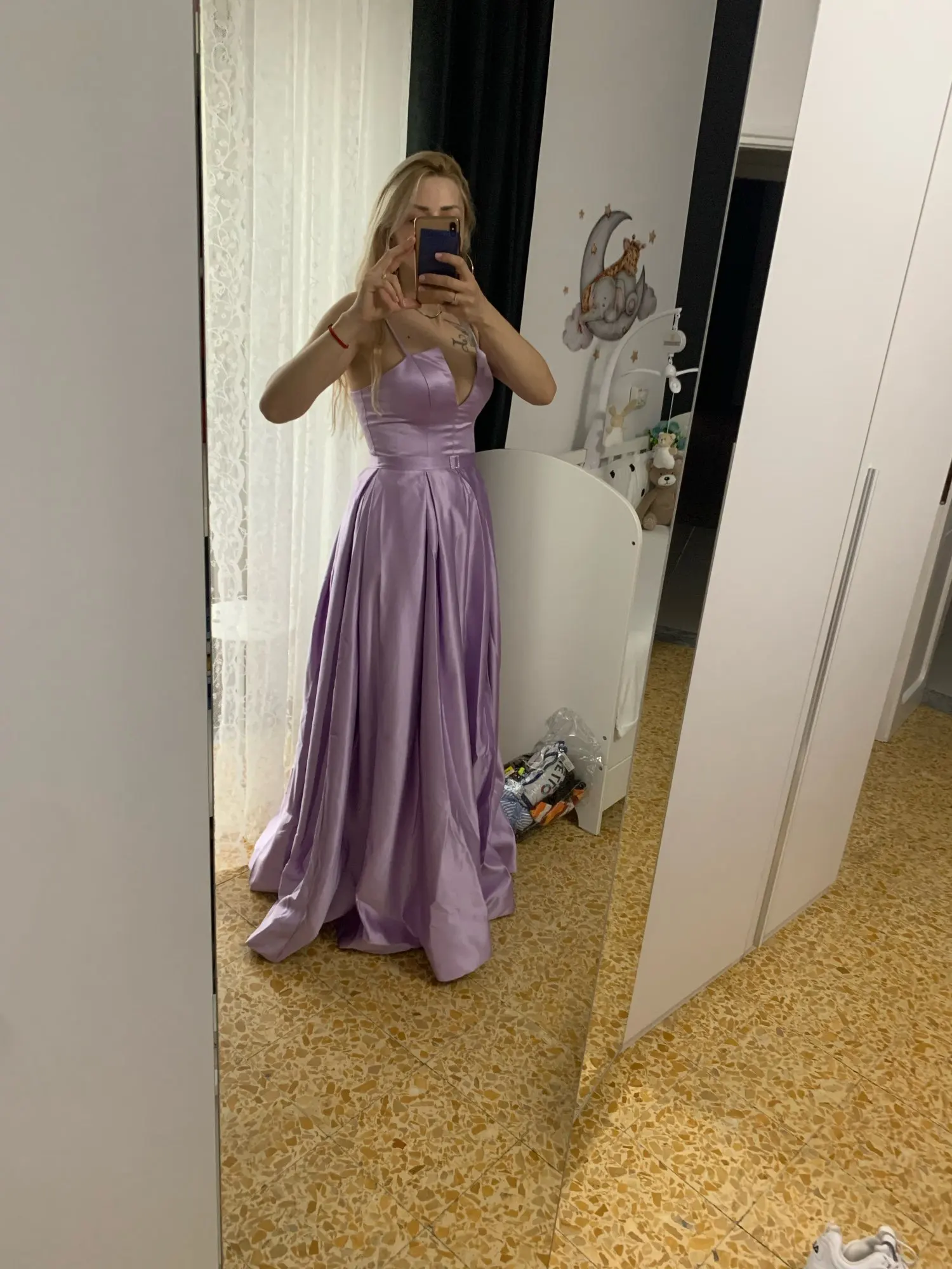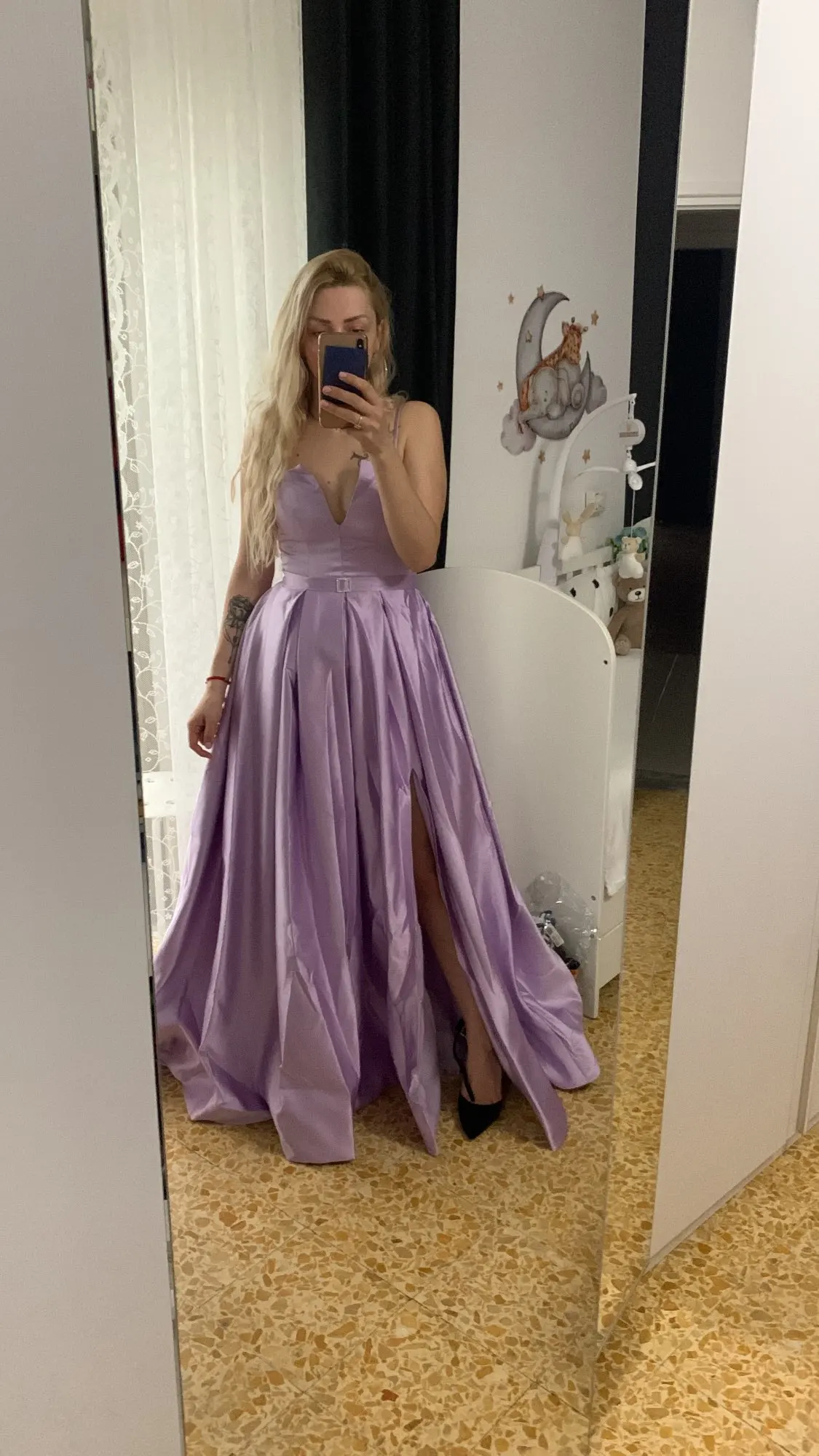 Платье А-силуэта для выпускного вечера, атласное с Боковым Разрезом, Формальные вечерние наряды, длиной до пола, сиреневое