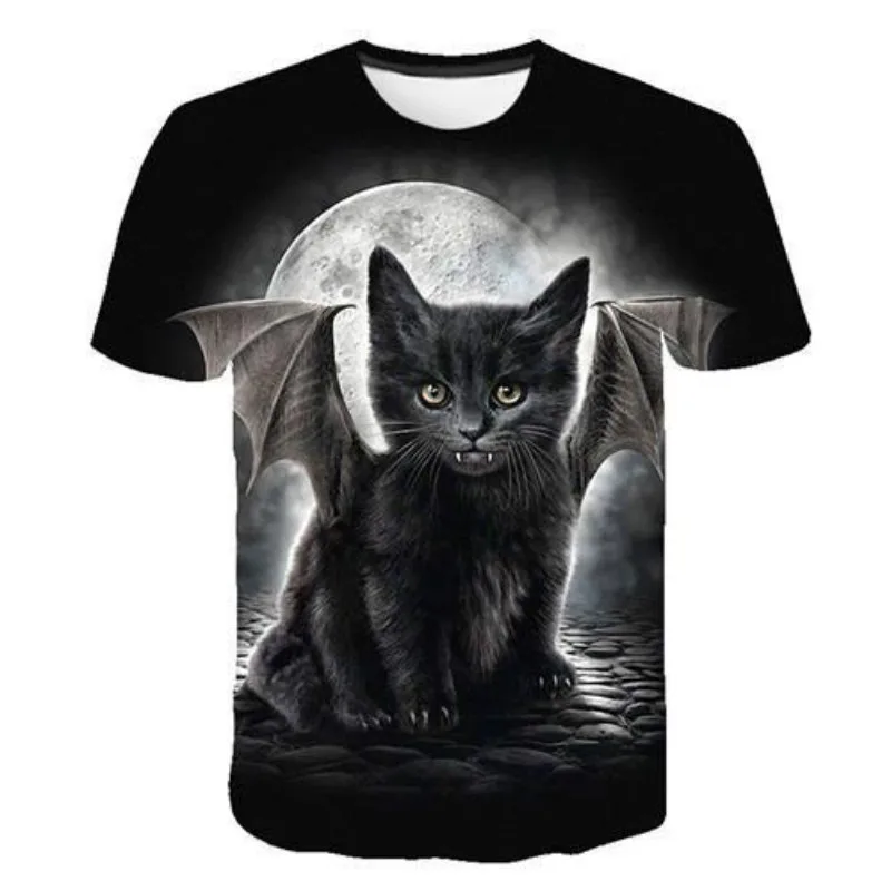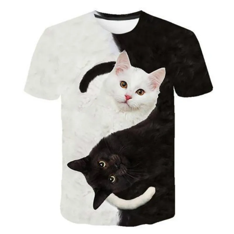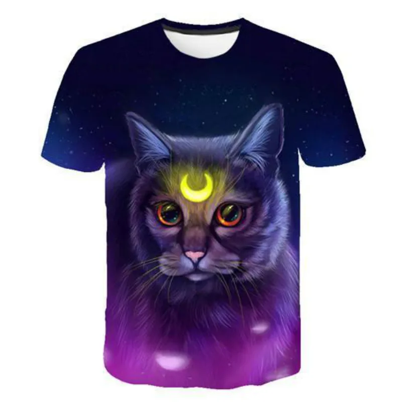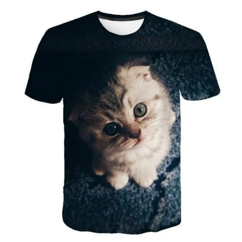 Короткая рубашка для мальчиков и девочек, с 3D-принтом, в стиле Харадзюку, с изображением динамичного аниме, милого кота, с круглым вырезом, 2021