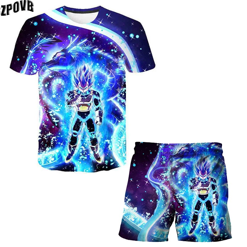 Костюм с футболкой Драконий жемчуг, футболка для мальчиков, комплект из 2 предметов, футболка и шорты, комплекты детской одежды, Вегета для девочек и мальчиков