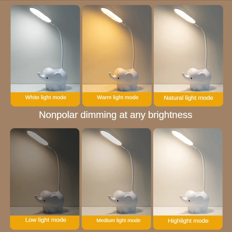 Светодиодная настольная лампа в виде слона, креативный светильник с функцией подзарядки и регулировки температуры в трех цветах, для обучения, в спальне, в спальне