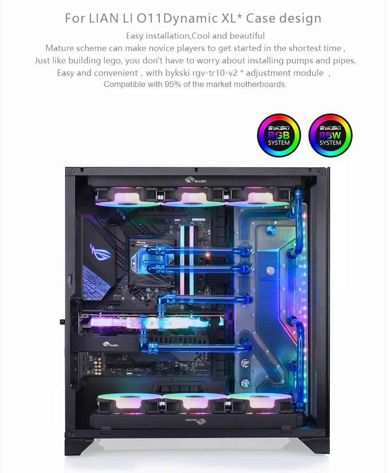 Bykski Distro Plate для LIAN LI-ROG O11 Dynamic XL чехол, 2x360 радиатор Охлаждающая петля решение, 12 В5 В RGB SYNC, RGV-LAN-O11XL-P