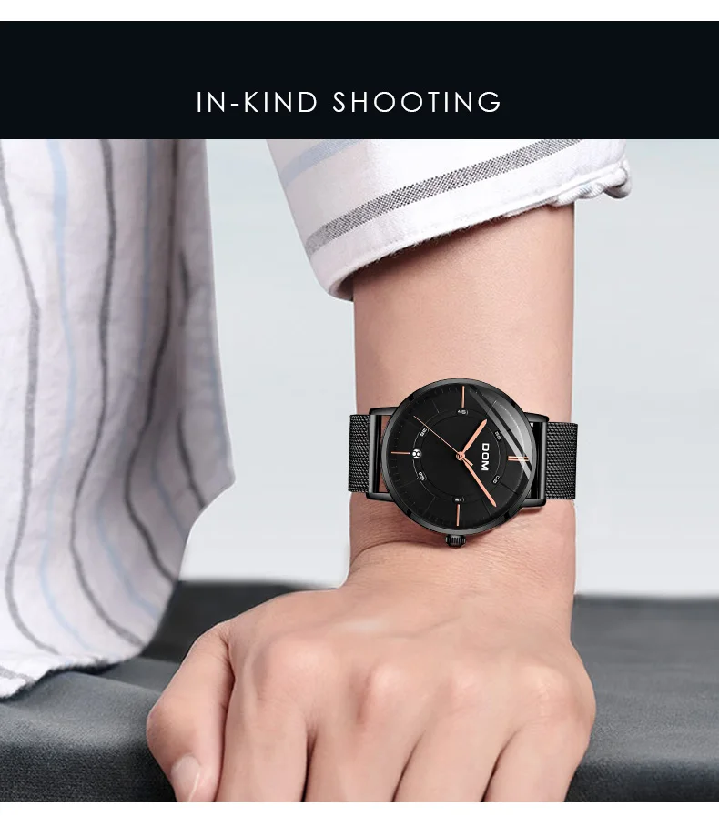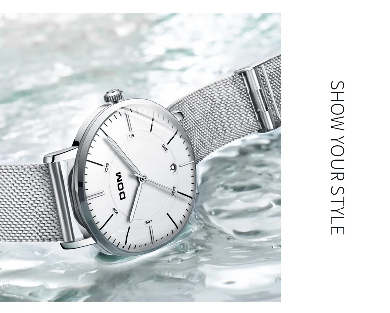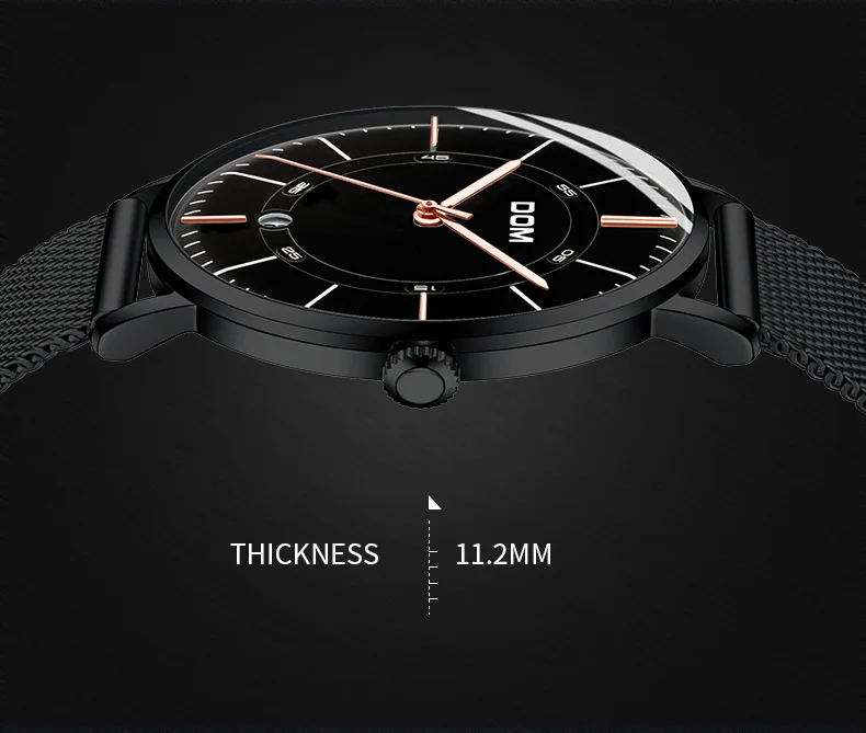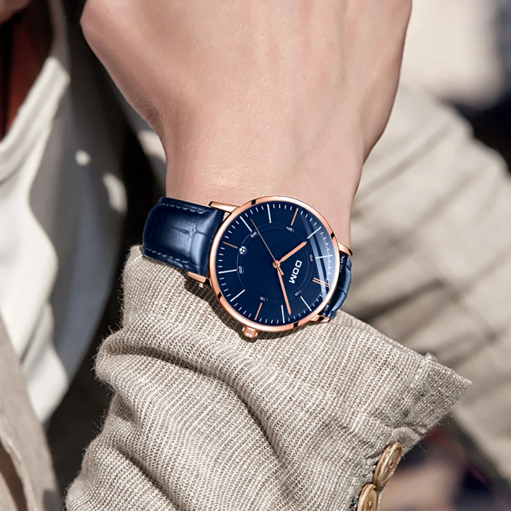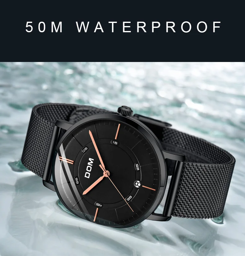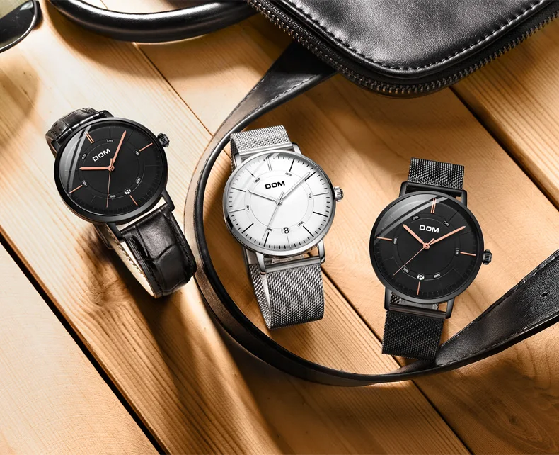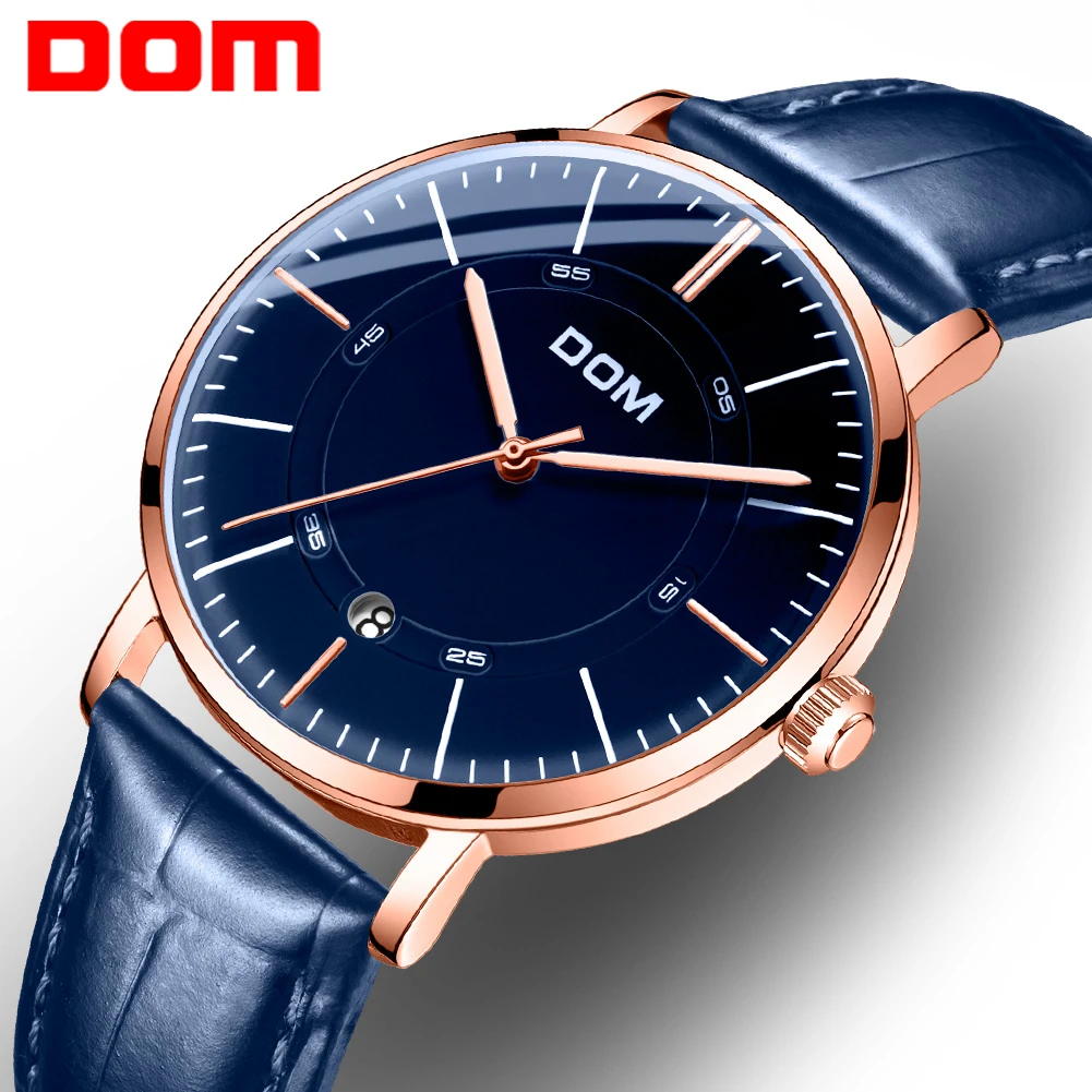 DOM мужские водонепроницаемые часы с кожаным ремешком тонкие кварце...