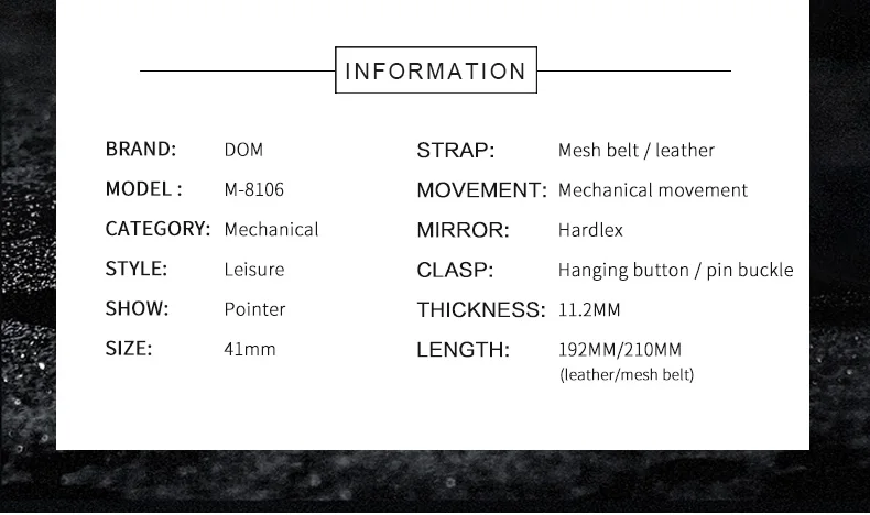 DOM Мужские автоматические механические часы мужские брендовые Водо...