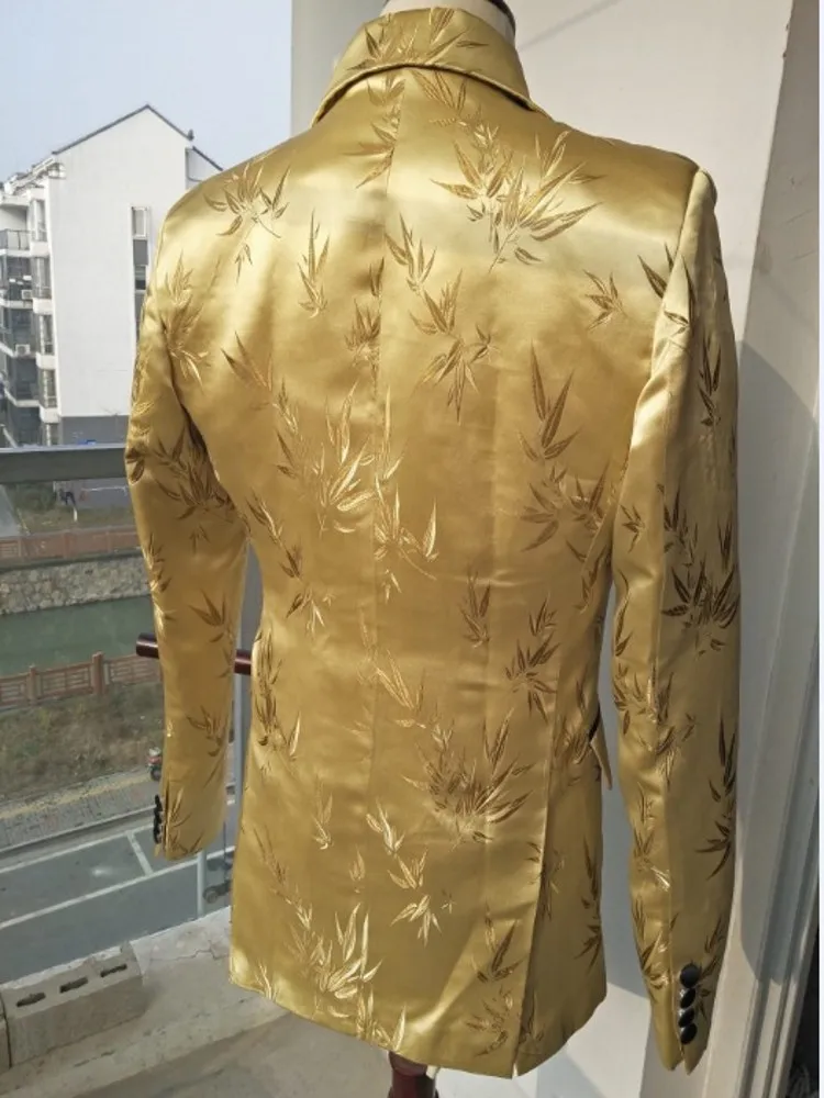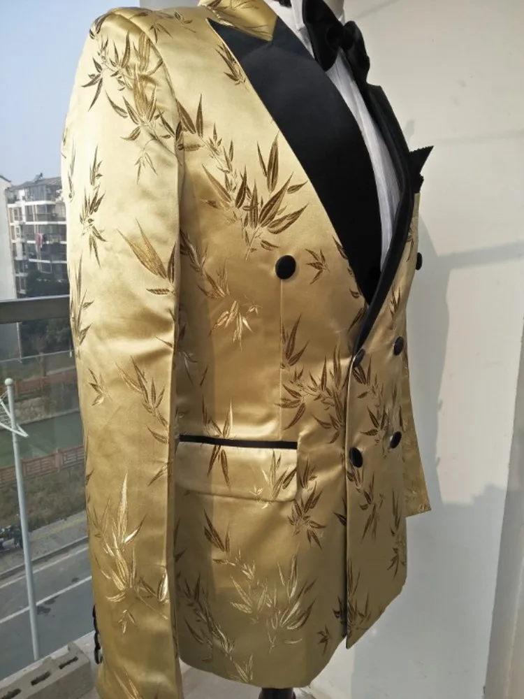 Настоящая фотография золотые мужские вечернее платье тосты костюмы Красивый смокинг для жениха, для работы, бизнеса, одежда (только куртка) OK-054