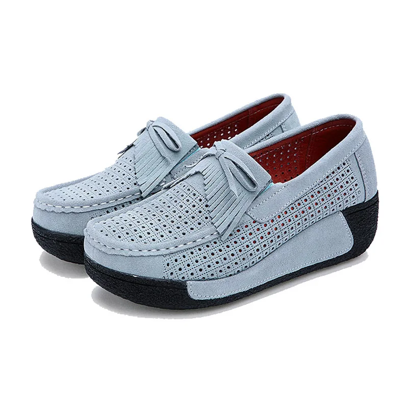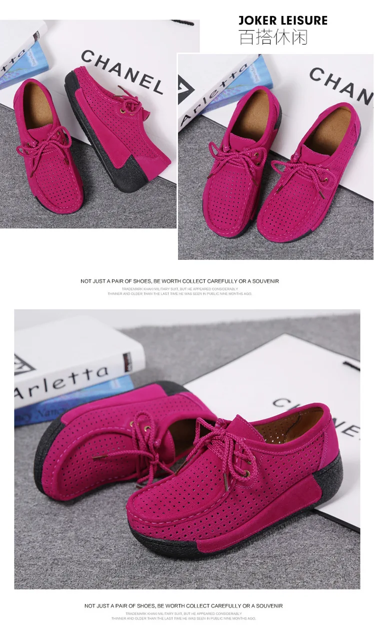 Лоферы женские замшевые на плоской платформе, кроссовки из воловьей кожи, на шнуровке, толстая подошва, Мокасины, весна-осень