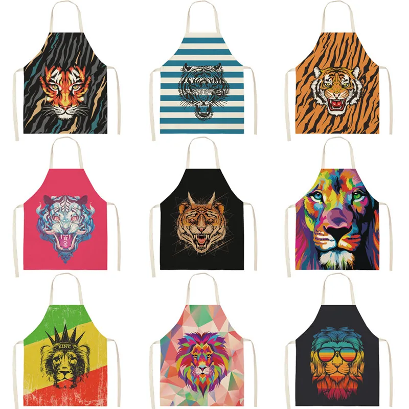 Кухонный Фартук для родителей и детей, хлопковые льняные фартуки без рукавов с принтом льва и Тигра для мужчин и женщин, инструменты для уборки дома, фартук для готовки