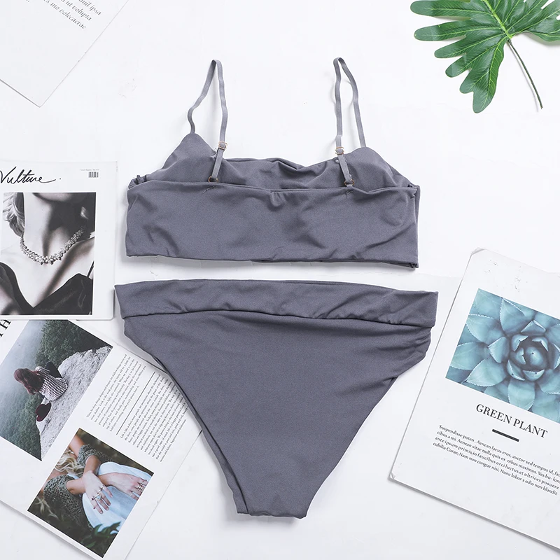 Купальник-бикини женский однотонный с высокой талией, без бретелек