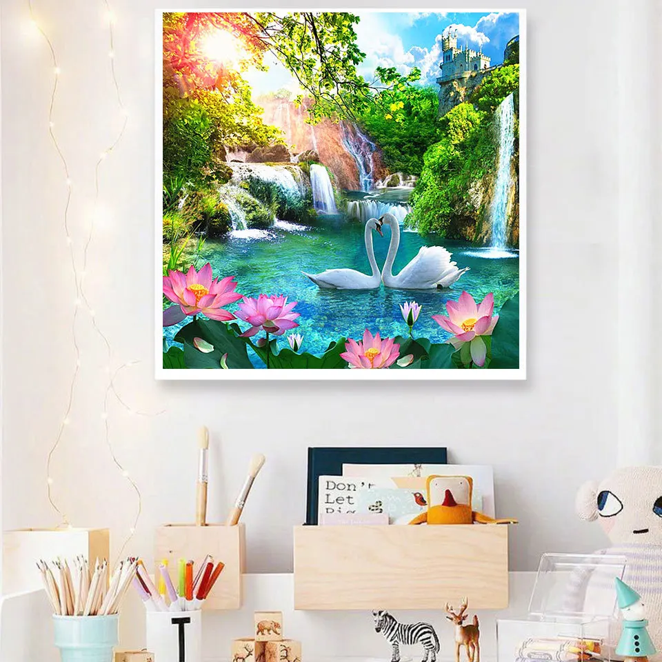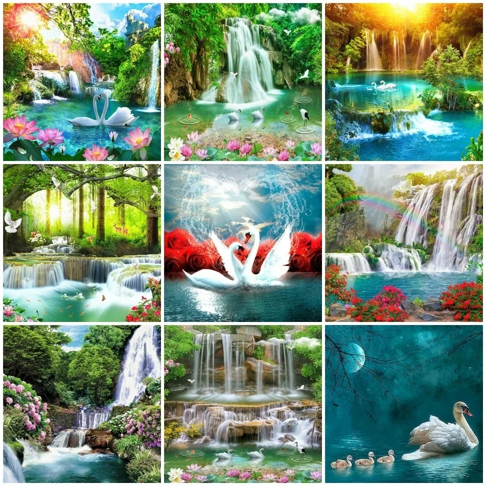 Алмазная 5D картина AZQSD сделай сам, мозаика лебедь, водопад, вышивка стразами, пейзаж, картина стразы, домашнее искусство, Декор