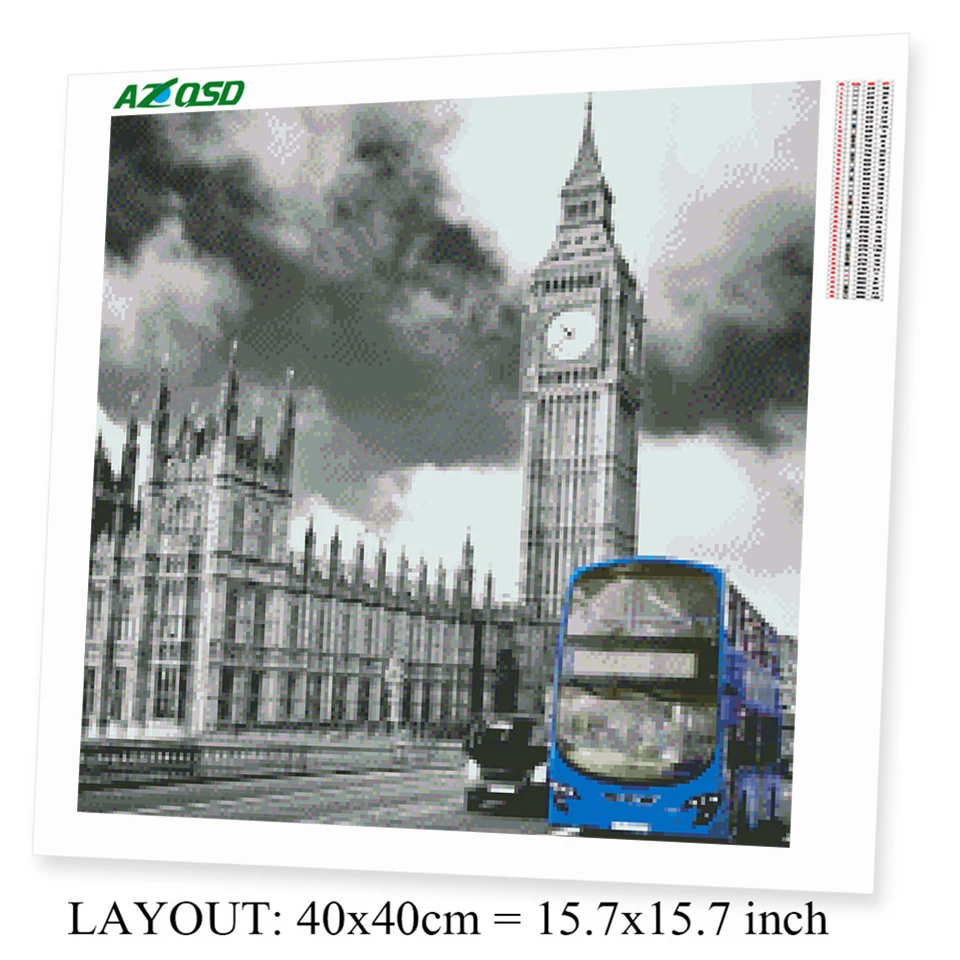 AZQSD 5D DIY Алмазная вышивка городской автомобиль мозаичное ремесло черно-белая алмазная живопись пейзаж украшение для дома