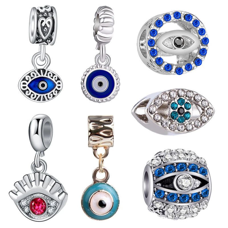 Счастливая демон глаза кулон Подвески серебряного цвета синий сверкающие хрустальные бусины подходят оригинальный Пандора браслет из бисера, сделай сам, ювелирное изделие