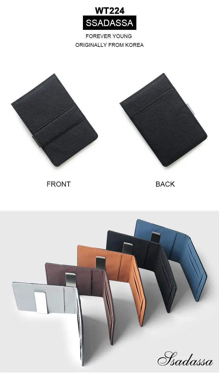 Лидер продаж, модный однотонный мужской тонкий двойного сложения, кожаный кошелек с металлическим зажимом, Женский кошелек для удостоверения личности, кредитных карт, держатель для наличных