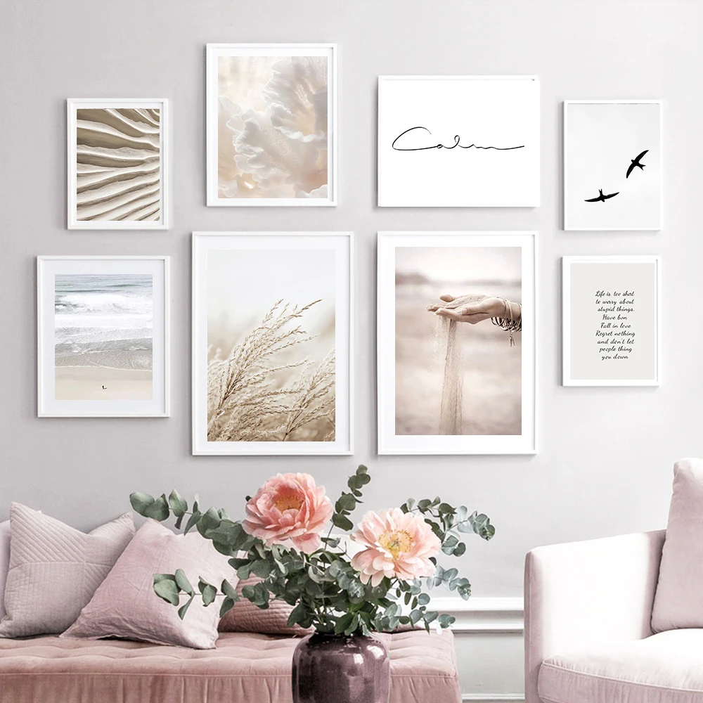 Песок падения камыша грибные птицы осень стены искусства холст картины плакаты пляж и печать настенные картины для гостиной декора