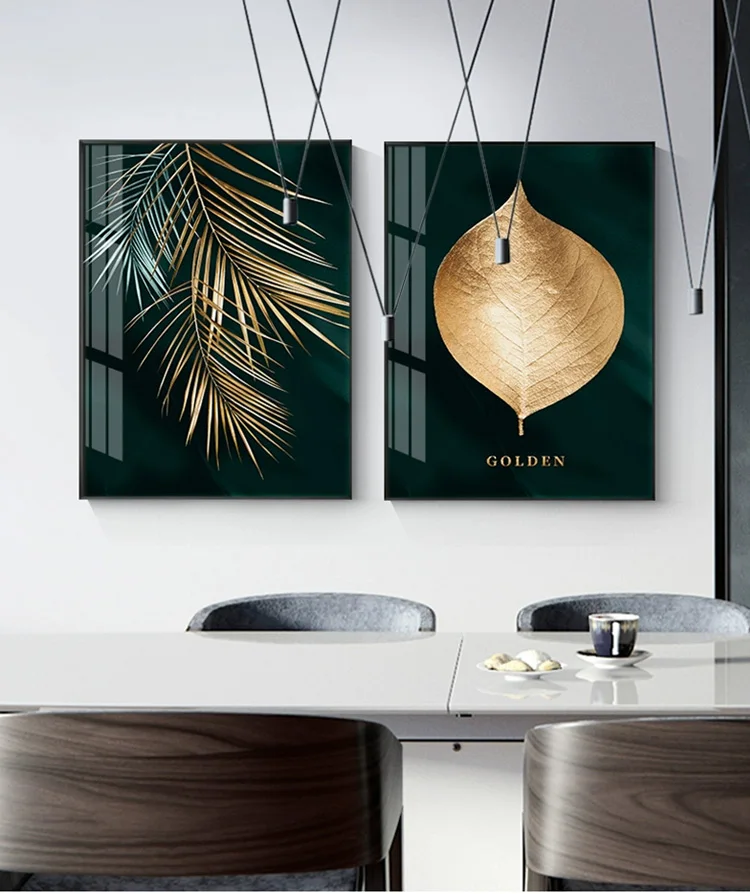 3 Панели настенная живопись темно-зеленые Золотые Большие листья светильник Кат свет Роскошная Современная декоративная картина для гостиной украшение дома