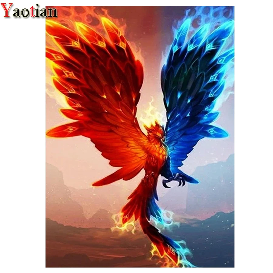 Алмазная живопись сделай сам с рисунком ледяного огня, Феникса, птицы, 5d Вышивка крестиком, мозаика, украшение для дома, круглая квадратная Алмазная вышивка