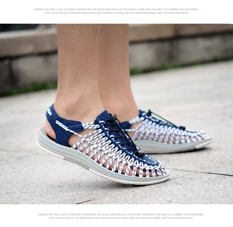 Пляжная обувь, мужские летние Тканые Сандалии, мужские Нескользящие дезодорирующие сандалии Baotou, мужские шлепанцы для отдыха на открытом воздухе
