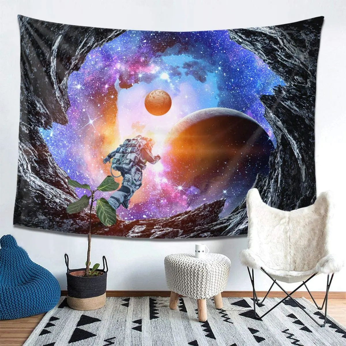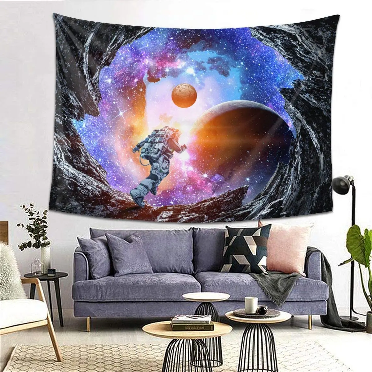 Астронавт бегает в галактику космический гобелен космический человек настенный домашний декор