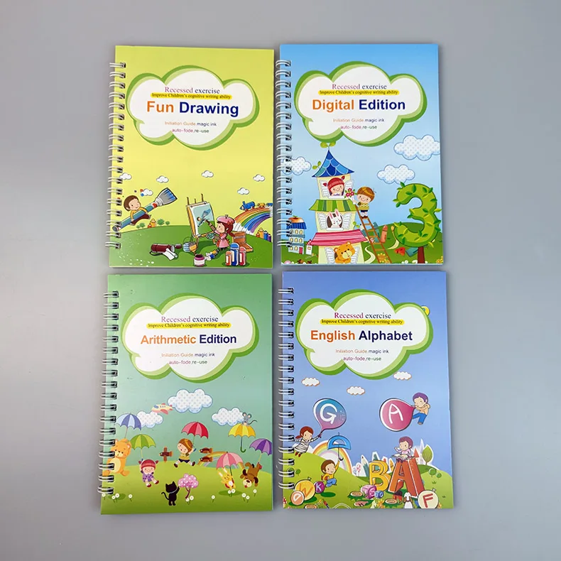 4 шт., многоразовые детские книжки для обучения каллиграфии