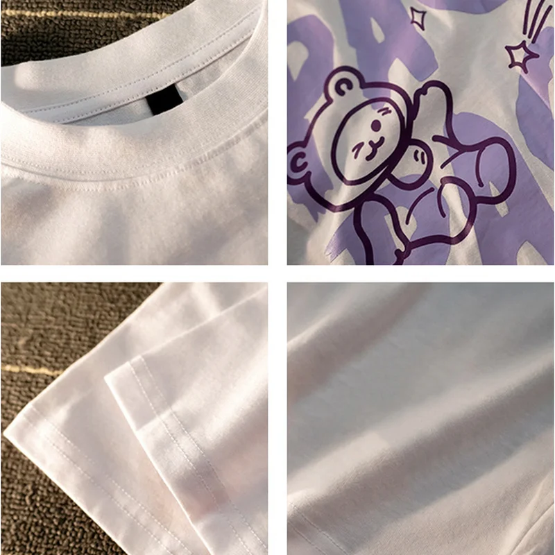 Футболка женская оверсайз с коротким рукавом и принтом медведя