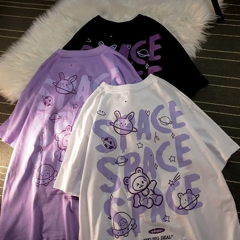 Женские летние футболки с коротким рукавом и принтом, простая свободная Милая уличная одежда для девочек с круглым вырезом, модные повседневные универсальные Топы