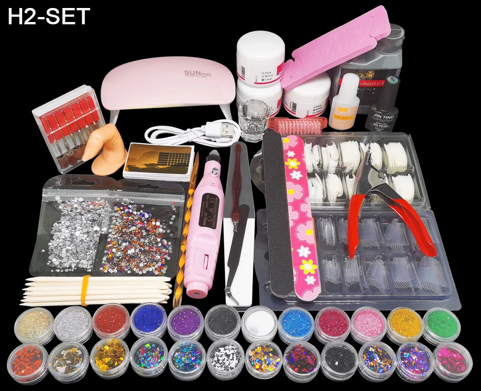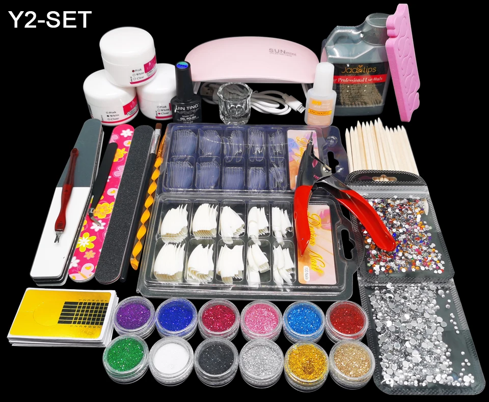 Профессиональный акриловый маникюрный набор, полный набор для акрилового маникюра, жидкая акриловая пудра с блестками для нейл-арта, набор для стрижки ногтей, набор кистей