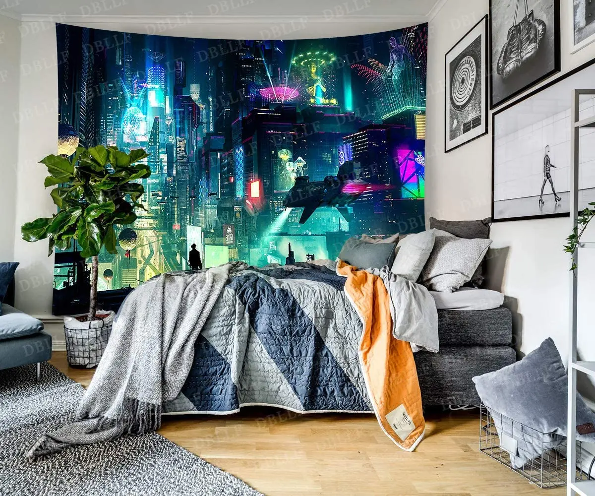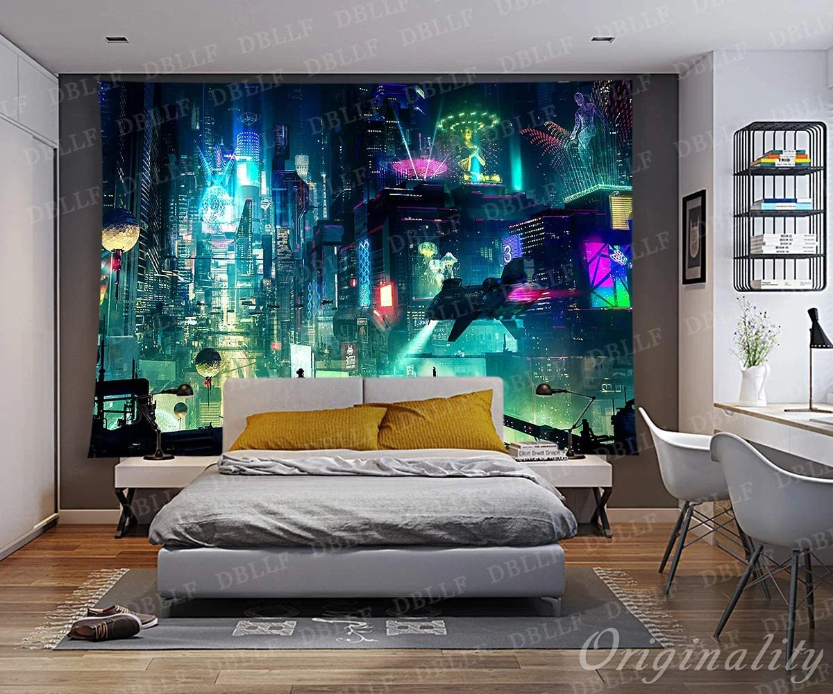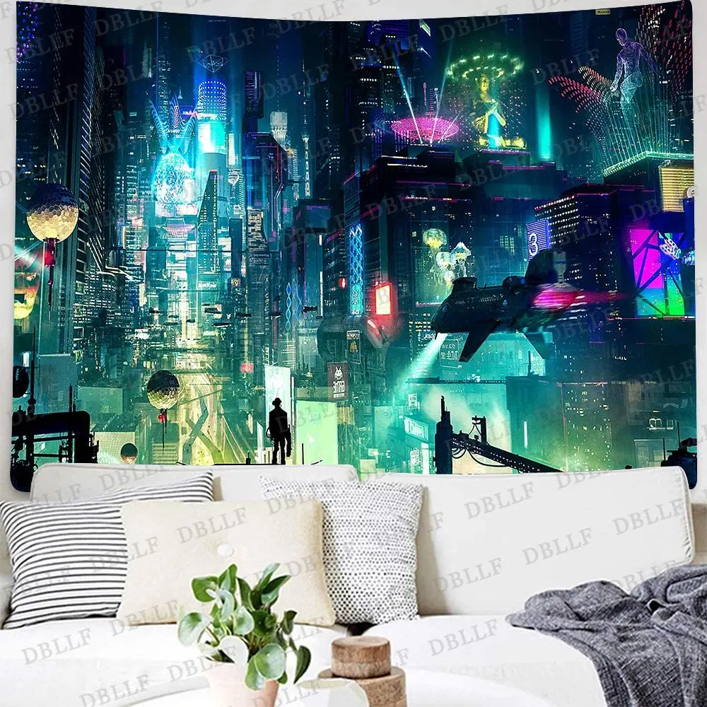 Гобелен в стиле Фэнтези, Токийский городской пейзаж, футуристические гобелены, красочные настенные картины, домашний декор