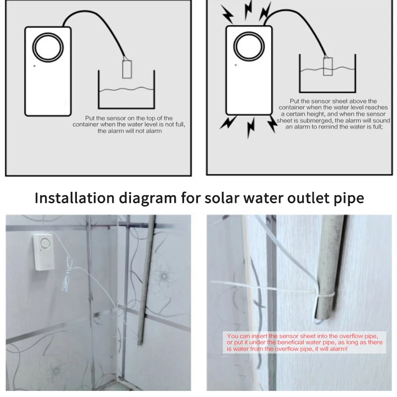 Нет кнопок, нет программирования, просто поместите его там, где вы хотите проверить утечку воды;