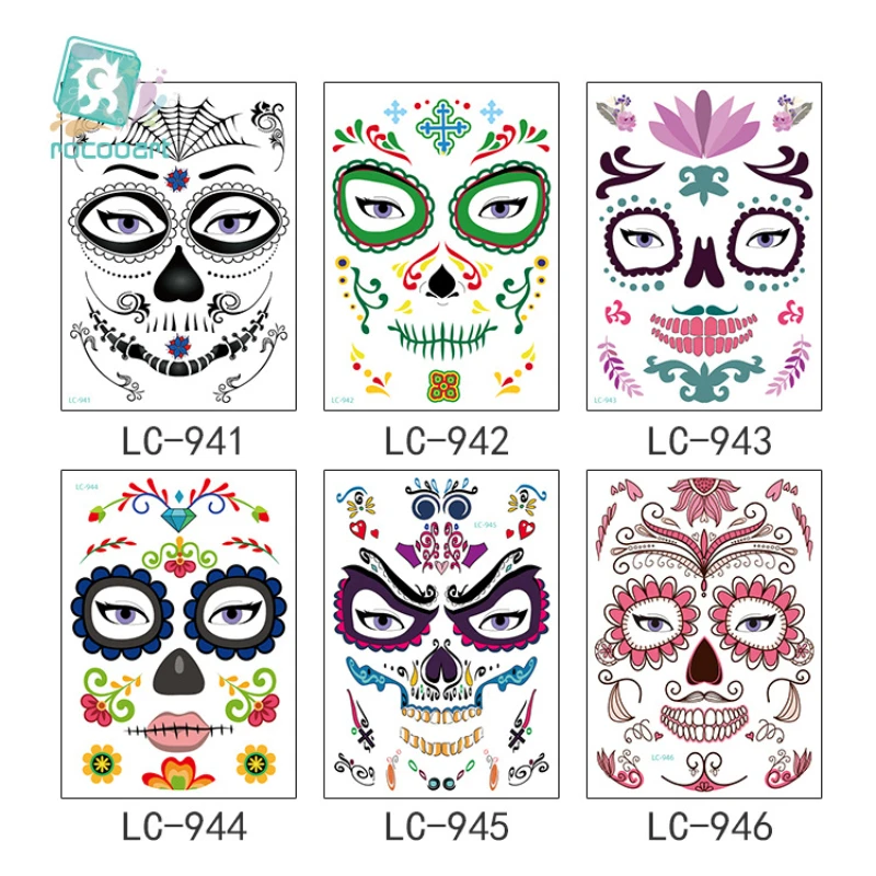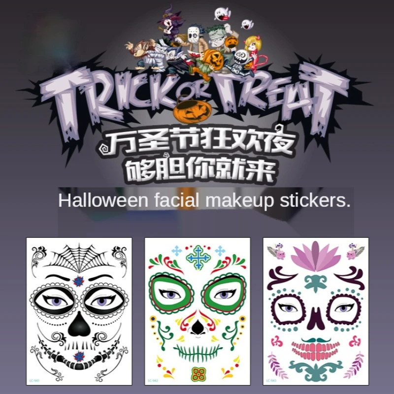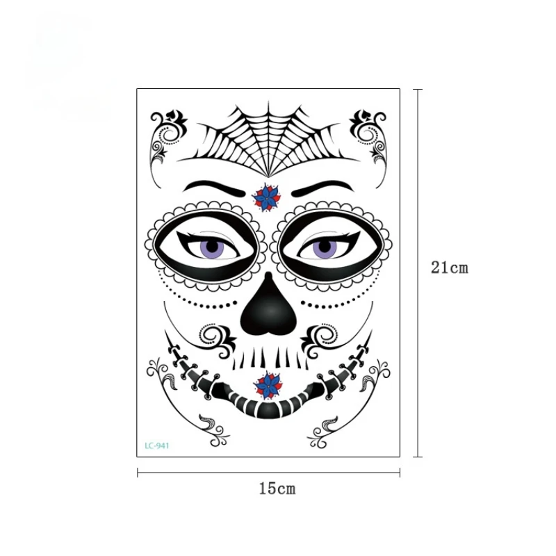 Наклейка для макияжа лица, специальная водостойкая татуировка для лица, День мертвых черепов, наряд для лица на Хэллоуин, временная татуировка, наклейка s