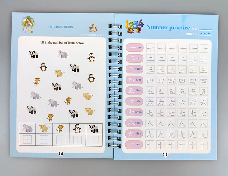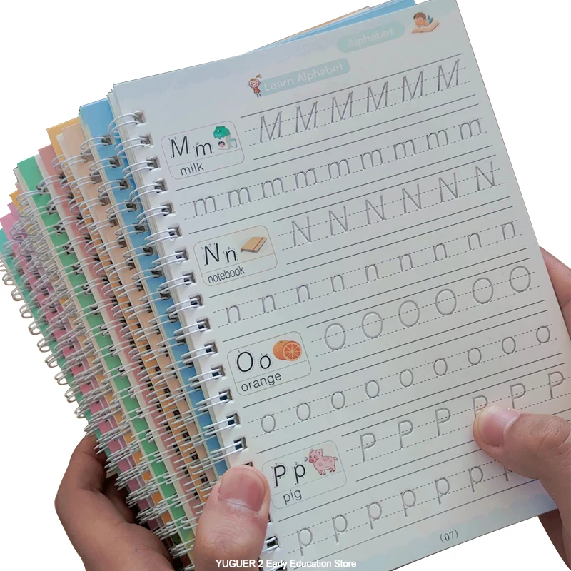 4 книги + ручка, многоразовая 3D Волшебная книга для упражнений для детей 0-10, наклейки для письма, каллиграфия, английские цифры, буквы, игрушки Монтессори