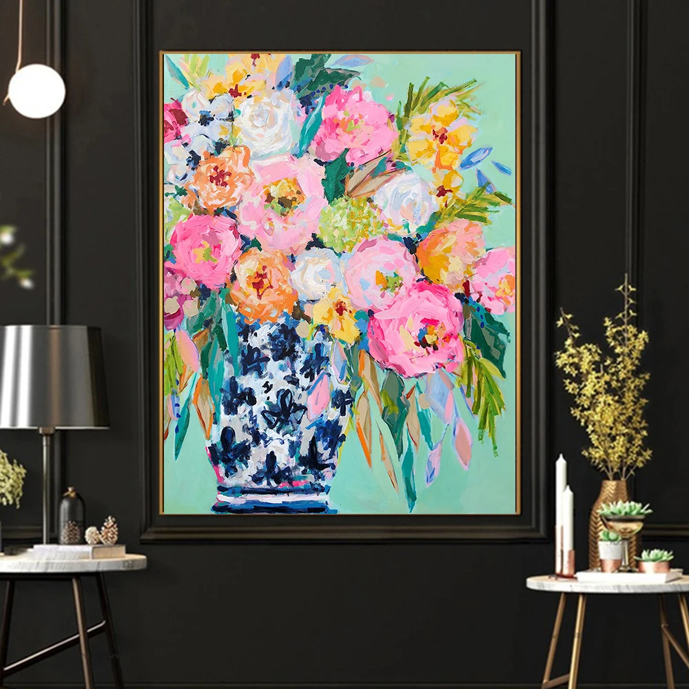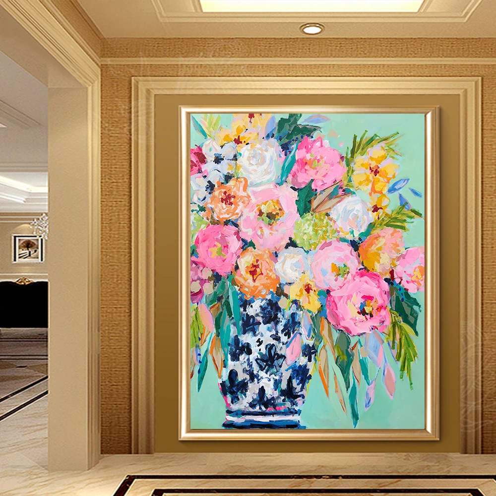 Красочная цветочная картина маслом на холсте абстрактный цветок плакат и принты картина домашний декор Настенная картина для гостиной