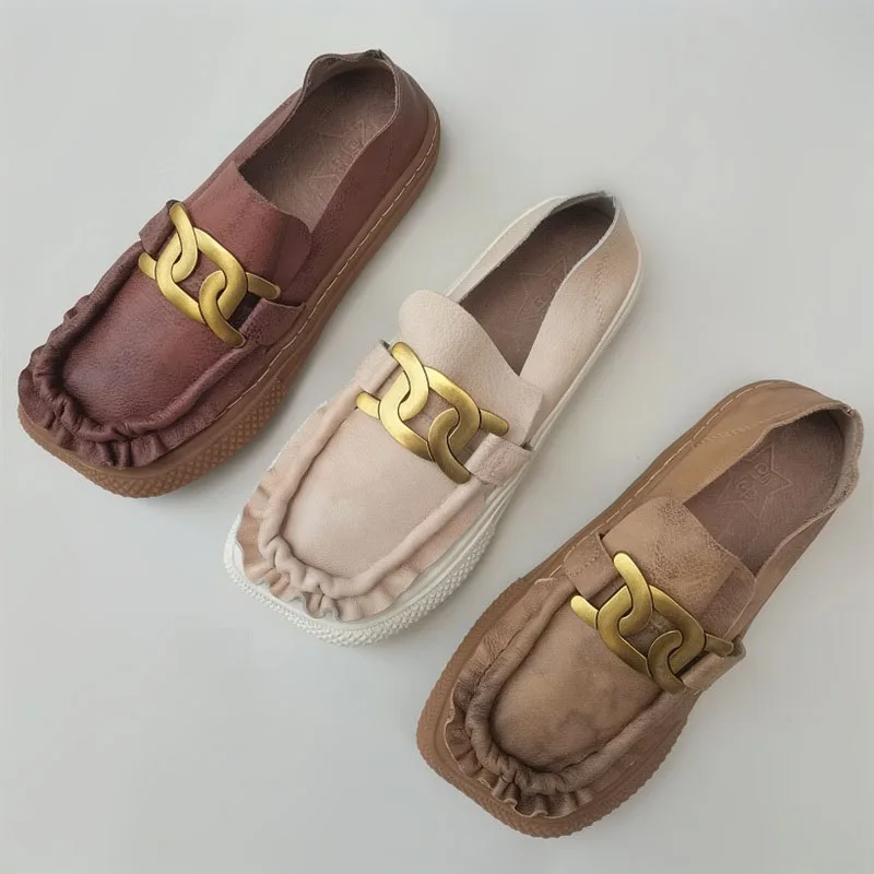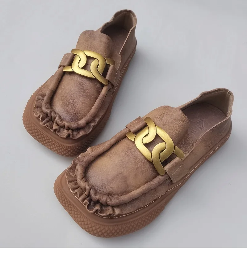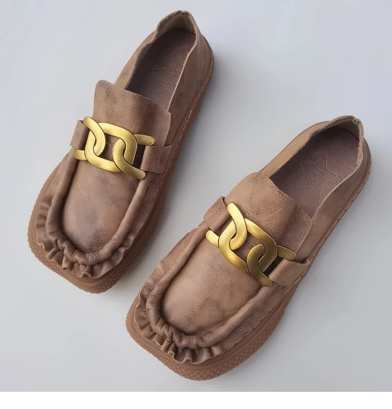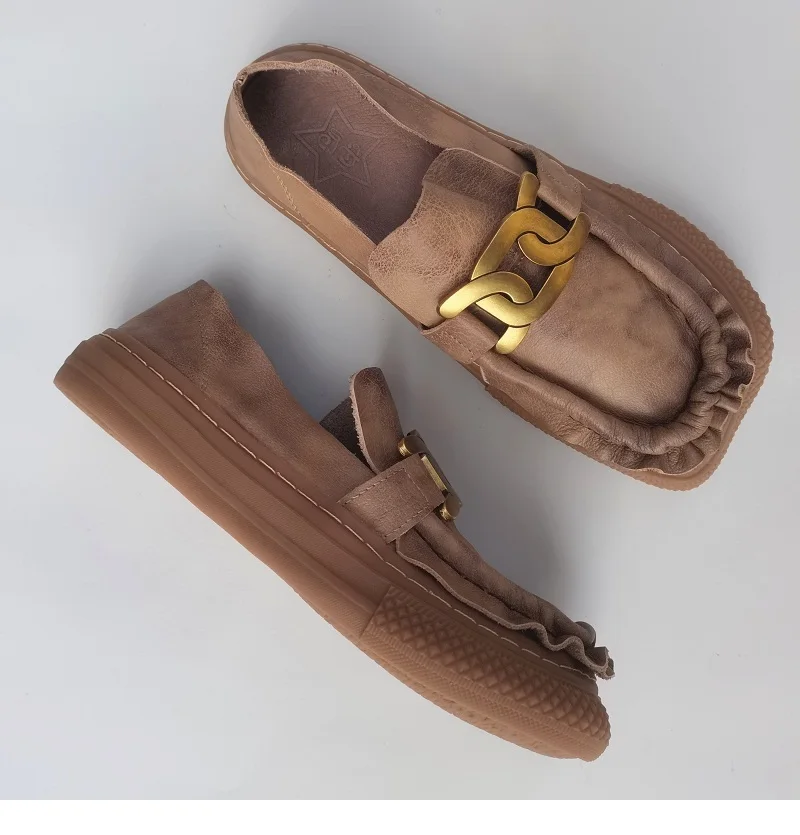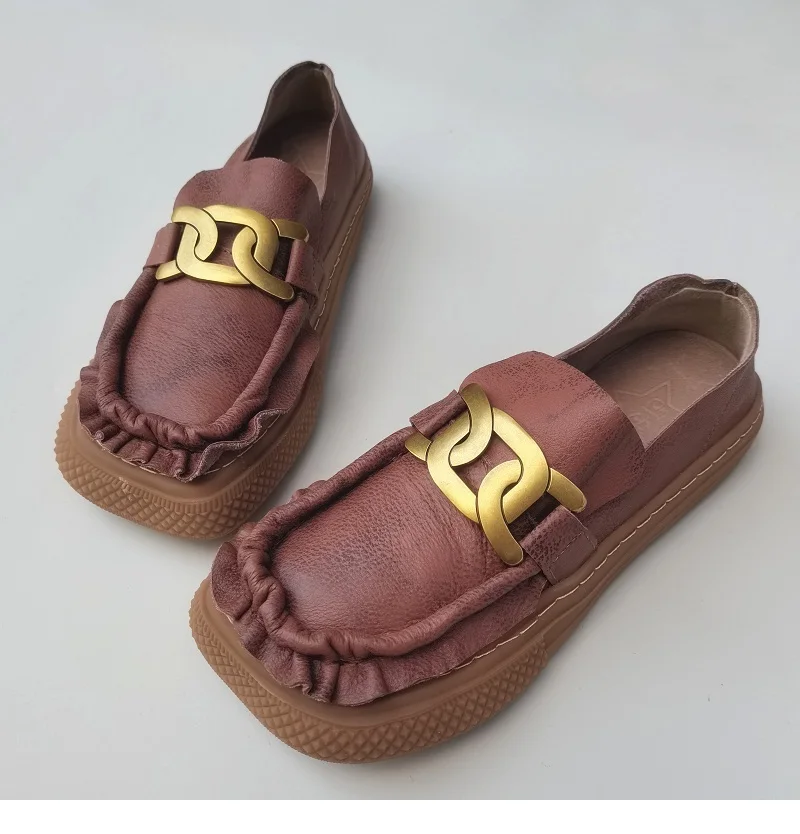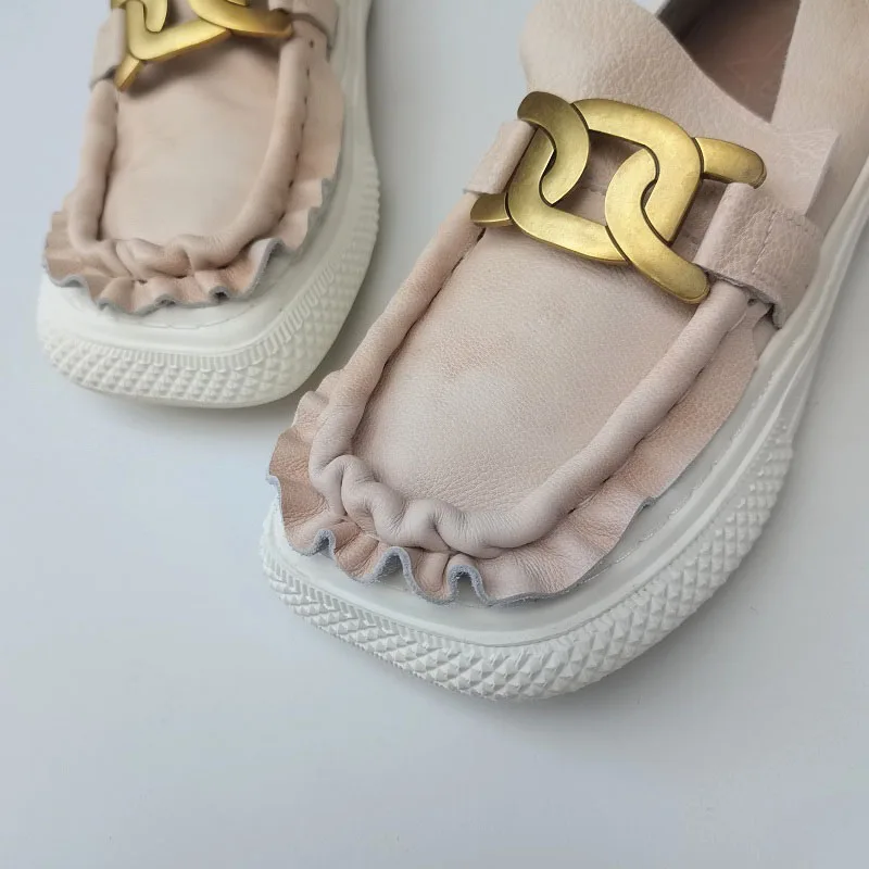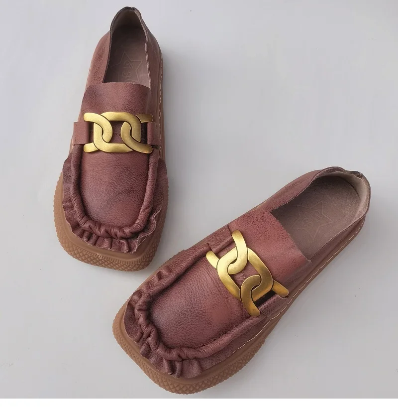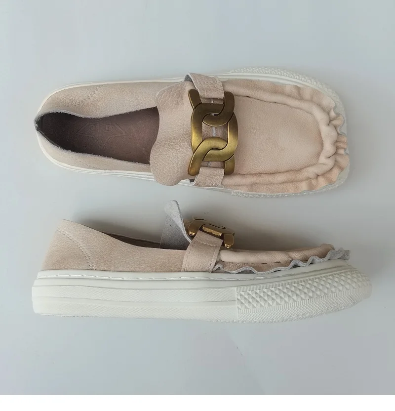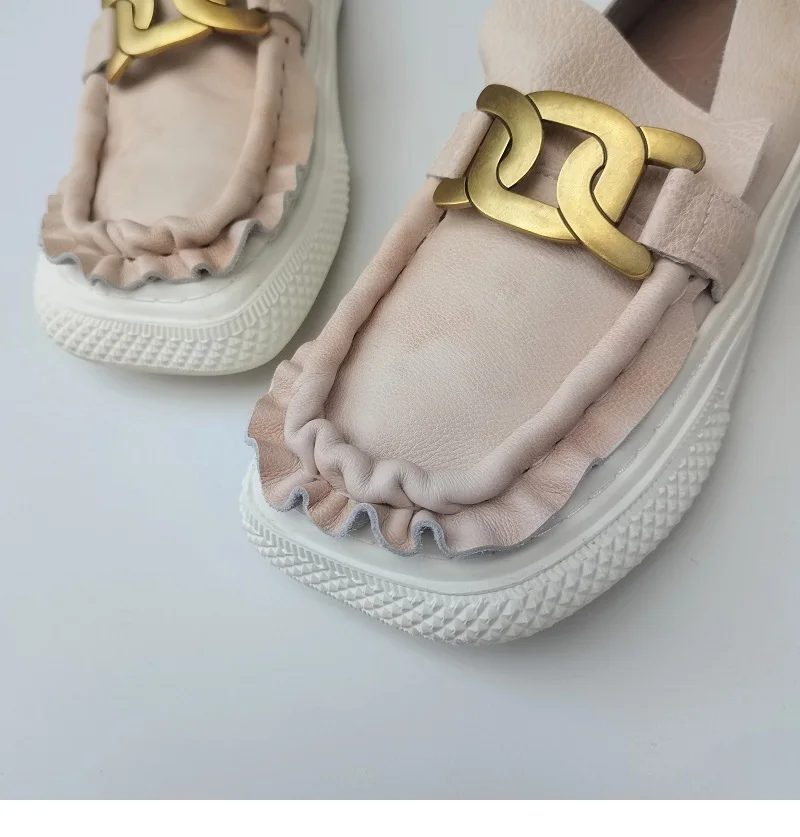 Балетки женские из натуральной кожи, без застежки, квадратный носок, Вулканизированная плоская подошва, дизайнерская обувь на платформе, 100%
