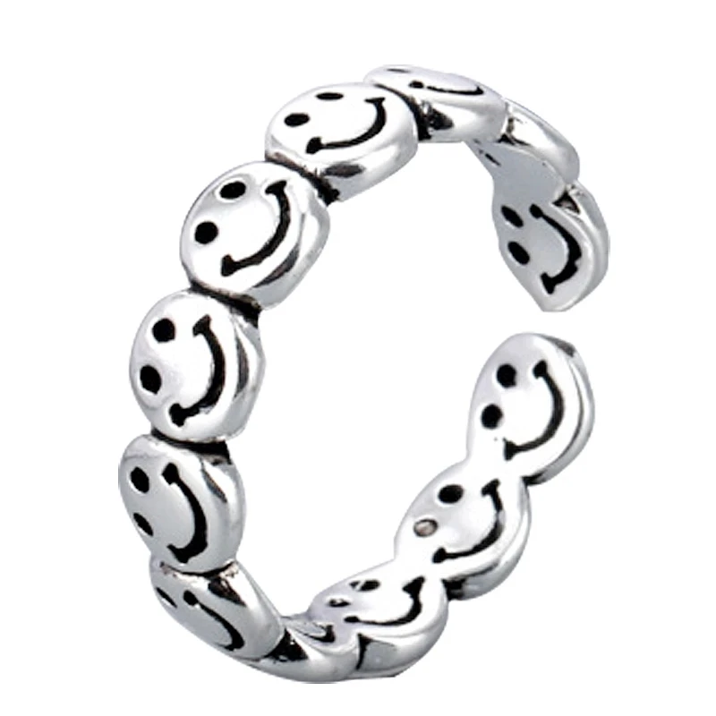 Винтажный античный серебряный Цвет счастливой улыбкой уход за кожей лица Открытые Кольца для женщин в стиле панк, в стиле хип-хоп регулировочного кольца модные ювелирные украшения, лучший подарок