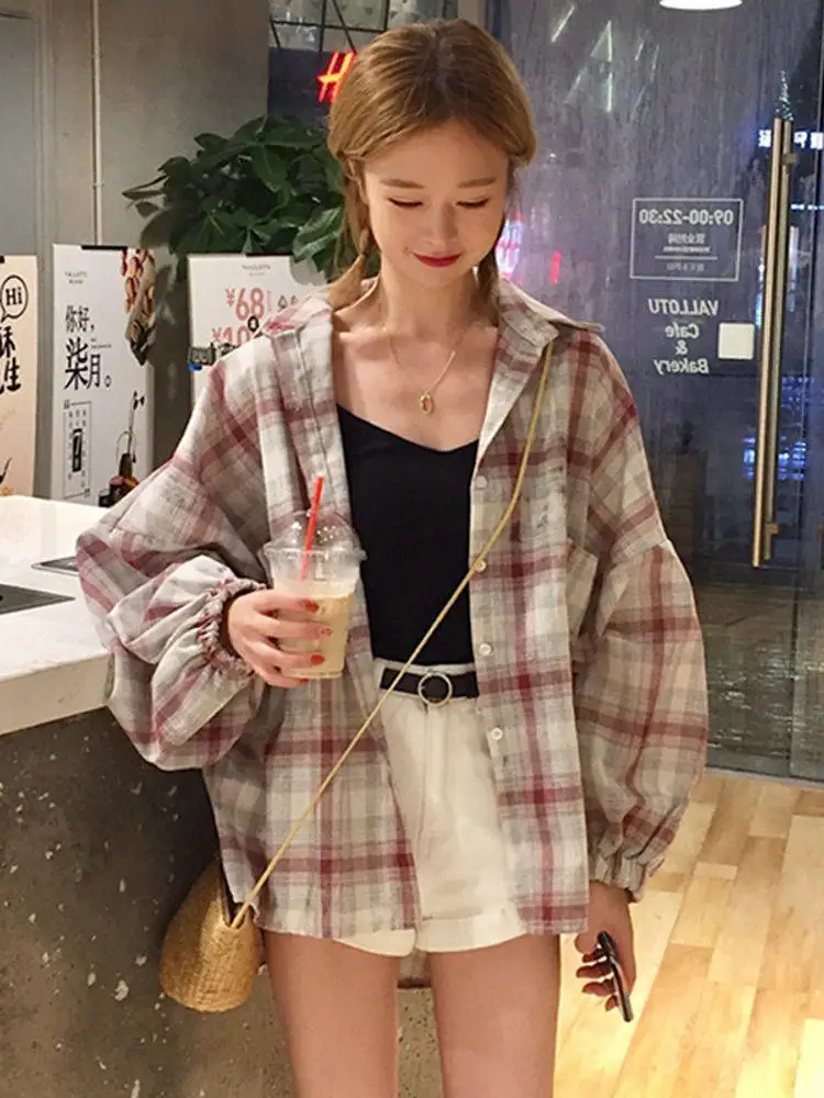 Женская клетчатая рубашка в стиле Харадзюку, модные женские блузки в стиле бохо, Топ с длинным рукавом, винтажная блузка, уличная одежда, летняя женская одежда, 2021