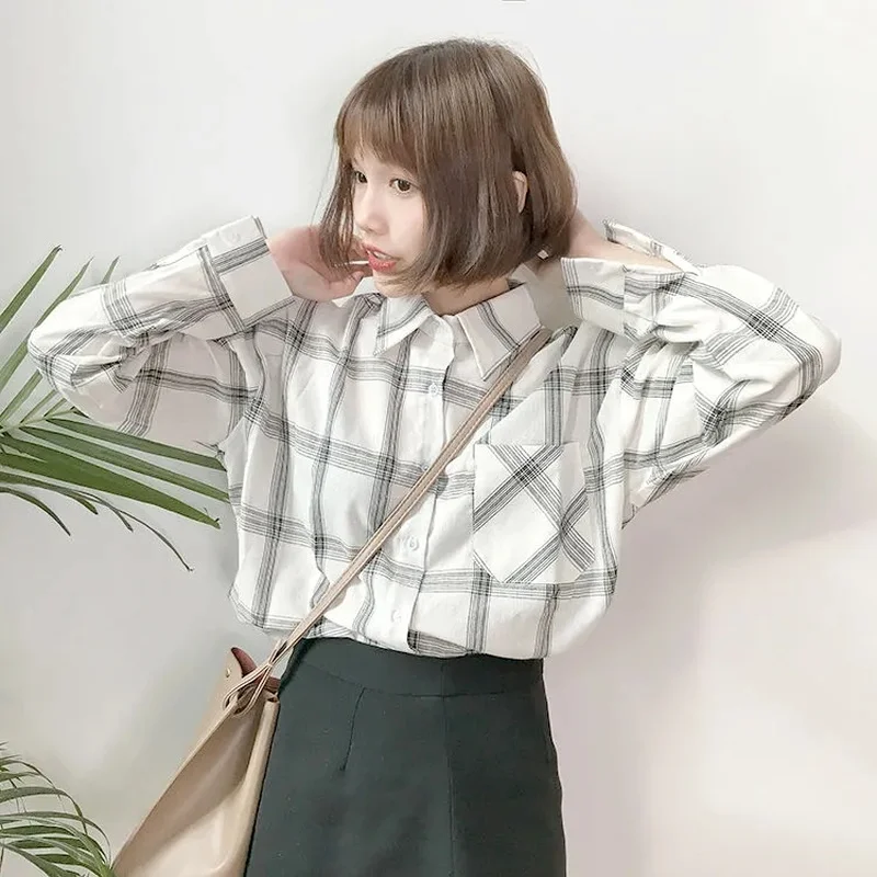 Клетчатая рубашка Женская Harajuku рубашка 2021 модная женская блузка Бохо Топ с длинным рукавом винтажная блузка уличная Летняя женская одежда