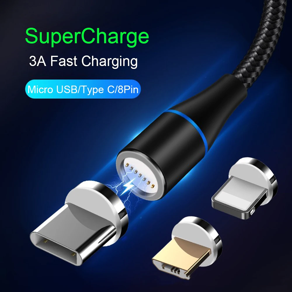 Магнитный зарядный кабель 3 в 1, 1 м, 2 м, USB кабель Micro USB Type-C, телефонные кабели, быстрая зарядка, провод 3,0 для Samsung A20, S20, S10, A71, S9