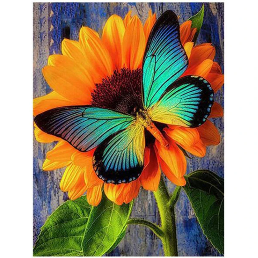 Алмазная живопись с квадратнымикруглыми стразами 5D, с изображением бабочки, вышивка с изображением подсолнуха, подарок мозаика для рукоделия г., WG2524