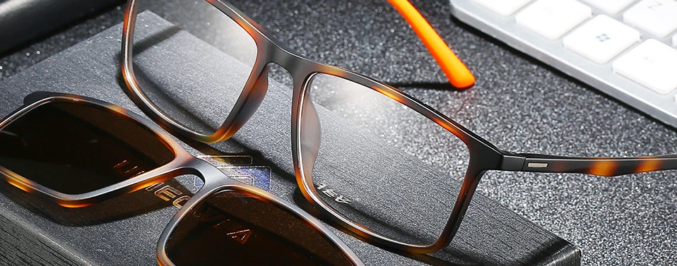 Мужские поляризационные солнцезащитные очки с леопардовой оправой, Прямоугольная оправа с магнитным зажимом для очков по рецепту, ULTEM оптический