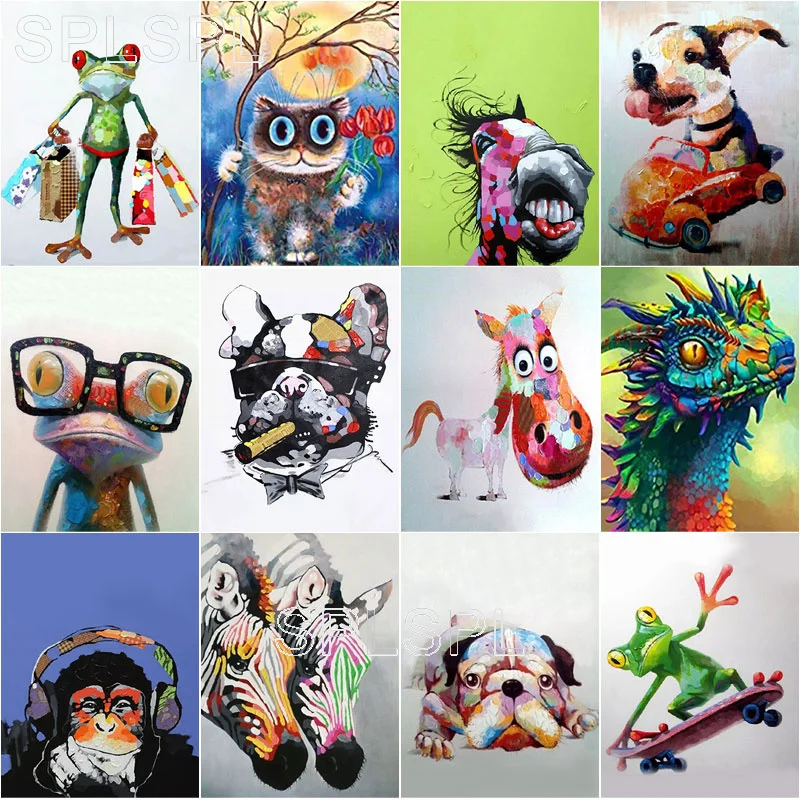 Алмазная живопись, мультяшная собака, кошка, корова, лягушка, слон,...