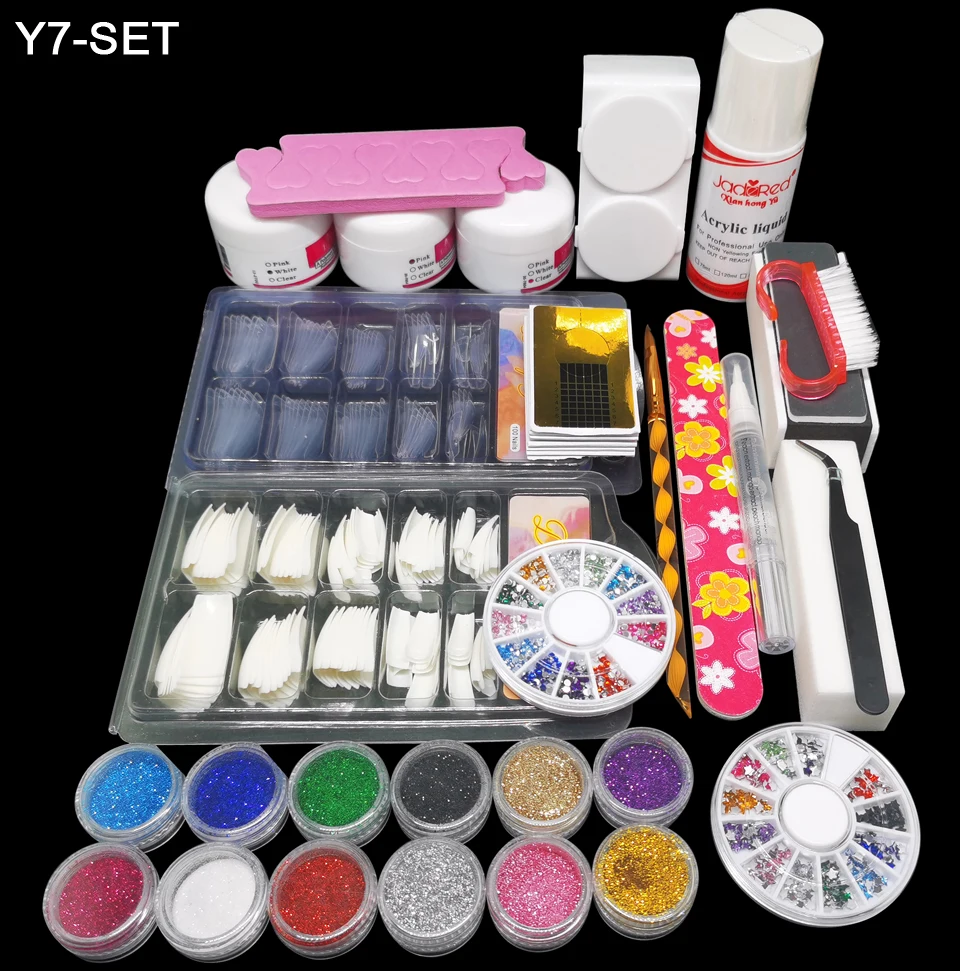 1 * кристальная жидкость (120 мл) 1 * Кристальный порошок (белый) 1 * Кристальный порошок (прозрачный) 1 * Кристальный порошок (розовый) 1 * лампа для ногтей SUN19 1 * USB шлифовальный станок 1*12 дисперсионный порошок 1*12 цветных алмазных блесток 1 * лак для ногтей 1 * Клей (10 г) 1 * французские ногти (прозрачные) 1 * французские ногти (белые) 1 * восьмиугольная чашка 1 * щетка с изображением кукурузы 1 * Смешанные алмазы (сумки) 1 * серебряный бриллиант (Сумка) 20 * деревянная палочка 1 * ножницы 1 * разделитель ногтей 20 * бумажный лоток 1 * поддельный палец 1 * кристальная жидкая кисть 1 * цветная ручка 1 * Черная шлифовальная полоса 1 * цветная шлифовальная полоса 1 * алмазная полировальная лента Размер коробки: 20*20*15 см Вес: 1,1 кг