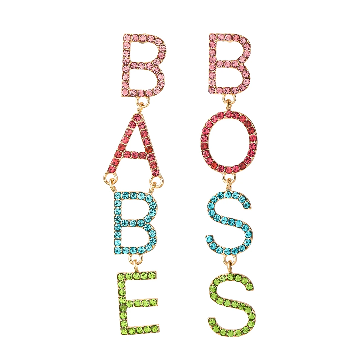 Модная металлическая со стразами, с буквами, BABE BOSS, серьги, женские популярные Висячие серьги, вечерние аксессуары