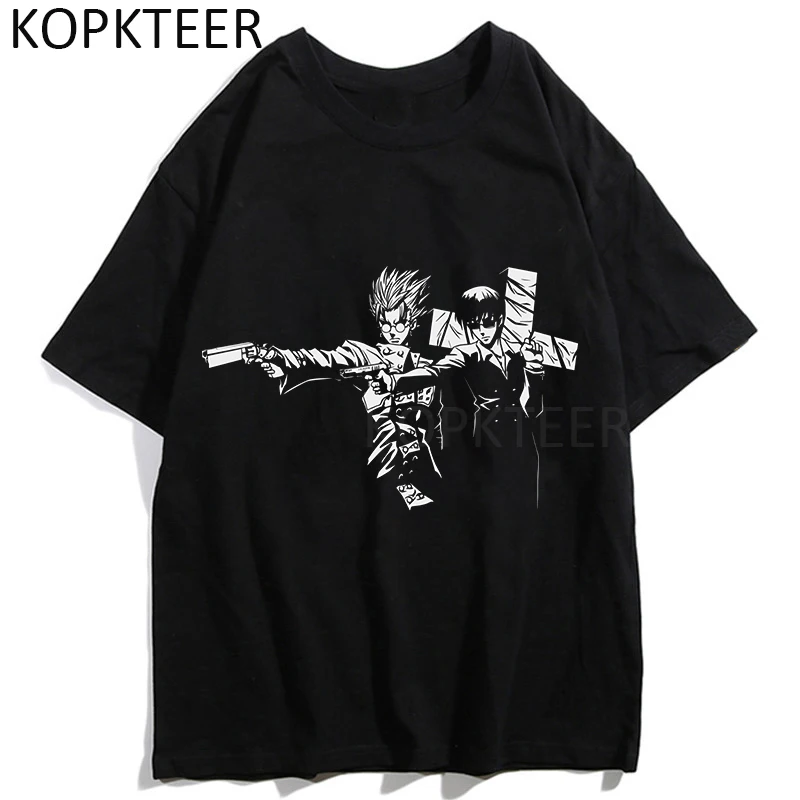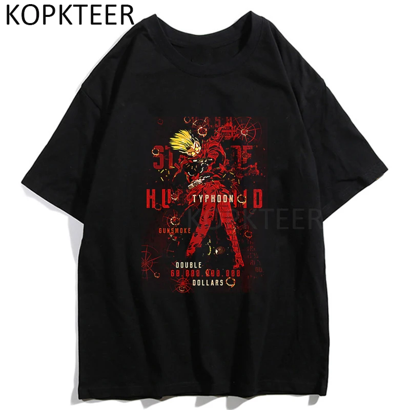 Футболка МужскаяЖенская, с забавным мультяшным принтом тригун Тайфун, с короткими рукавами и круглым вырезом, винтажная, Ullzang, футболки с аниме рисунком