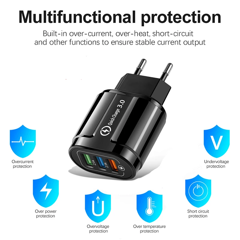 Зарядное устройство с 3 USB-портами и поддержкой быстрой зарядки 3,...