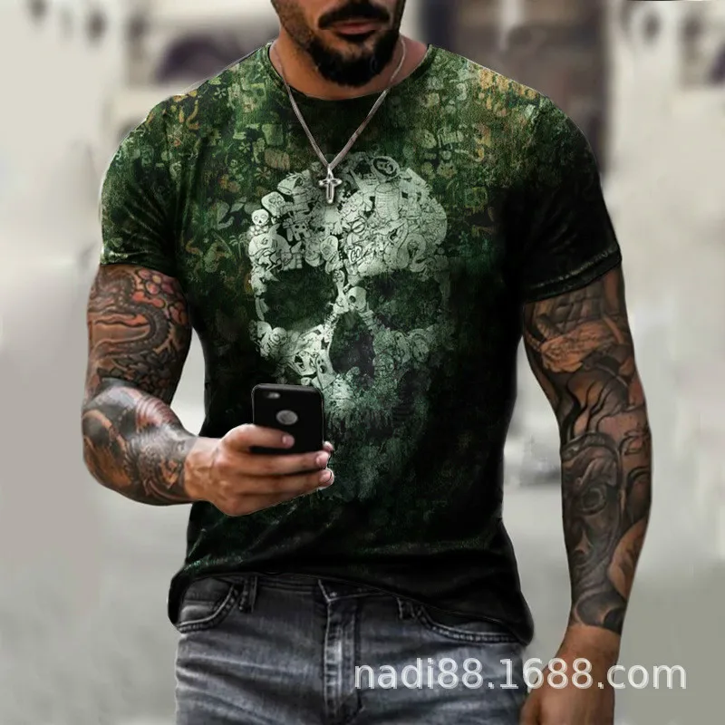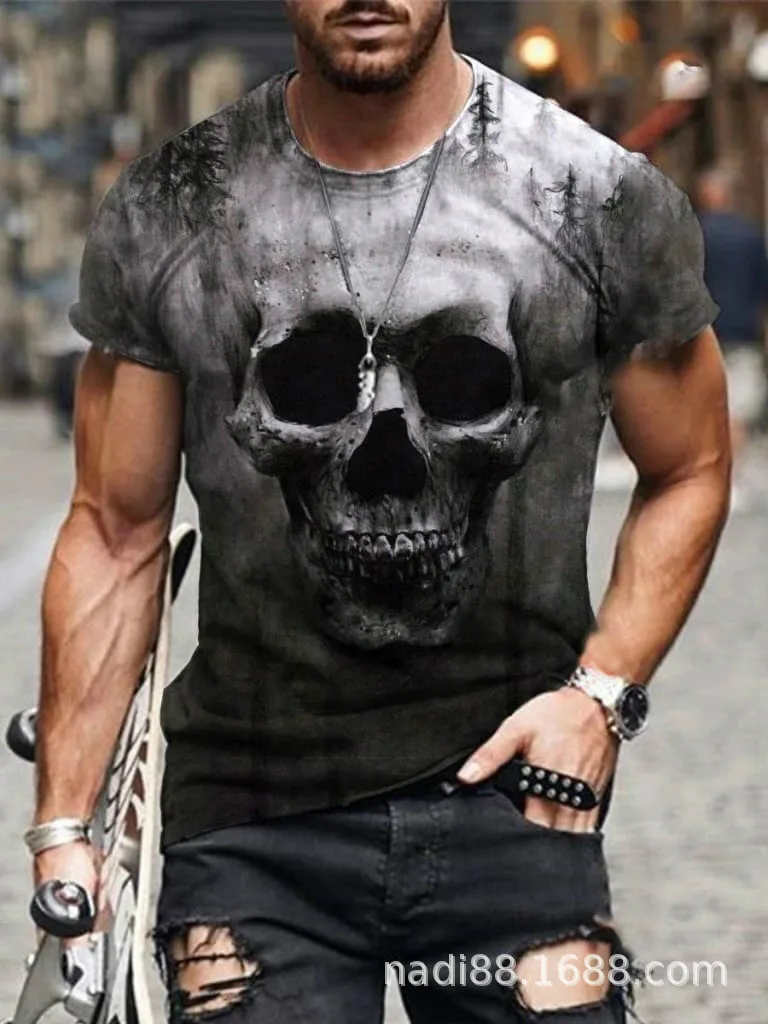 Мужская футболка с коротким рукавом и принтом черепа, свободная 3D ...